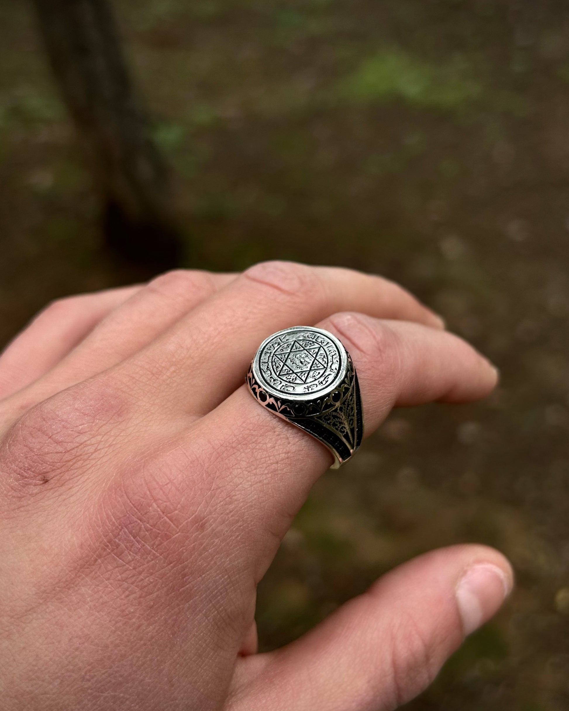 Bague Sceau de Salomon (avec pierre noire) – Argent massif 925