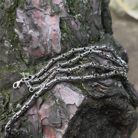 Ce collier à maillons en os est fabriqué artisanalement en argent sterling 925. Composé d'anneaux ovales épais entrelacés, ce modèle peut être porté seul ou en association avec d'autres colliers.
