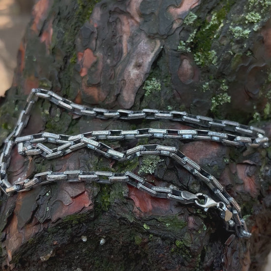 Collier à chaîne brodée à la main, confectionné en argent sterling 925. Se porte aussi bien seul qu'en association avec d'autres colliers.