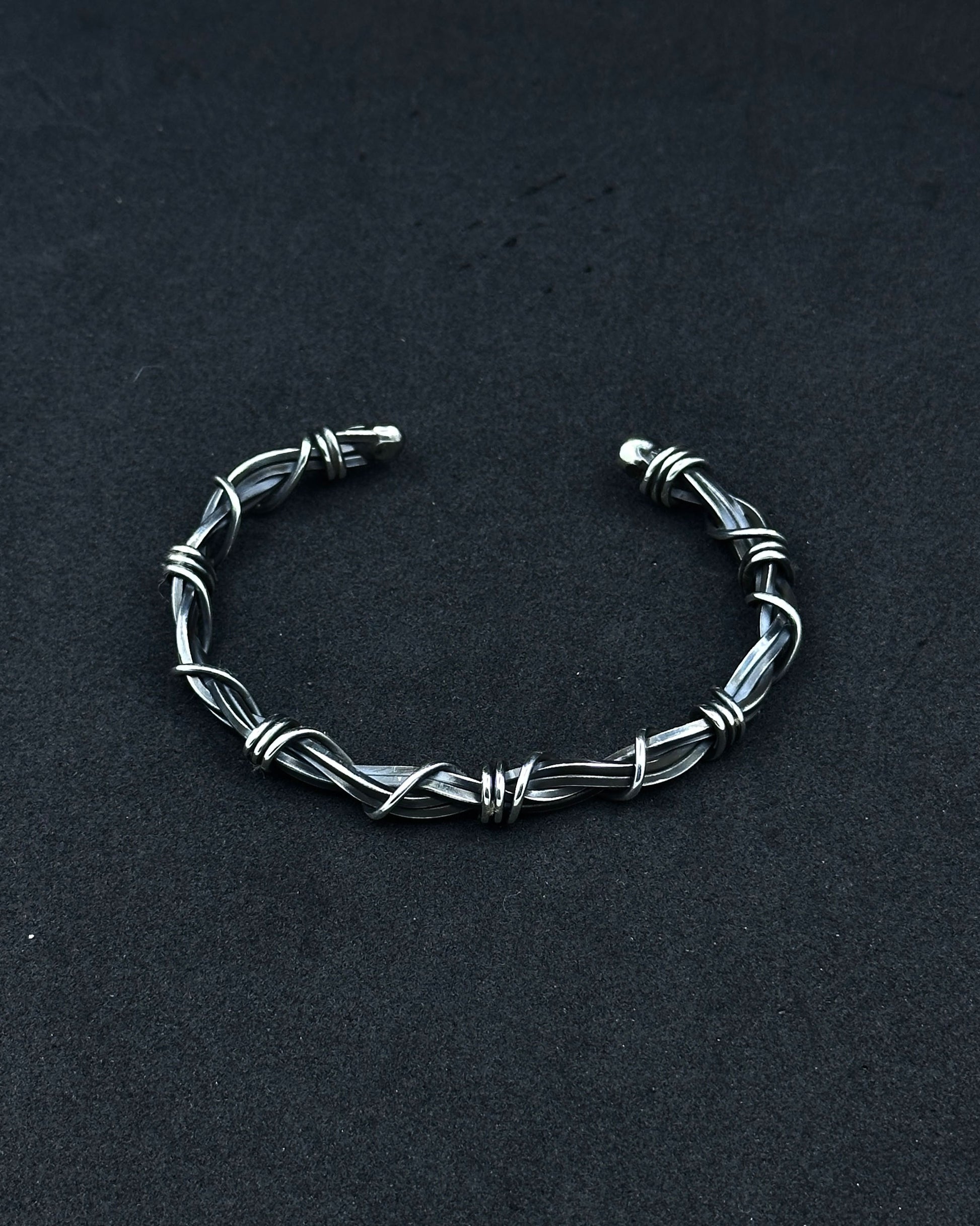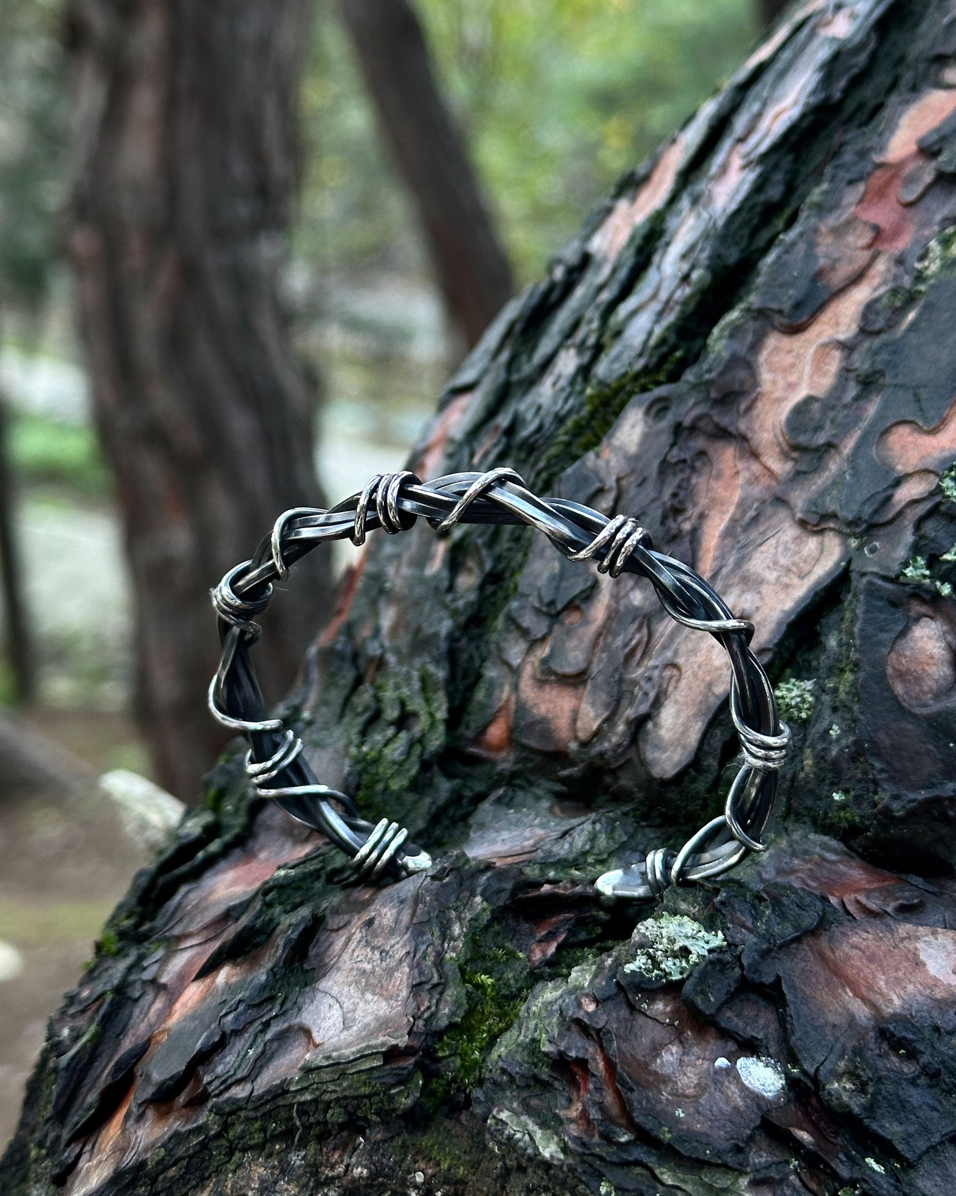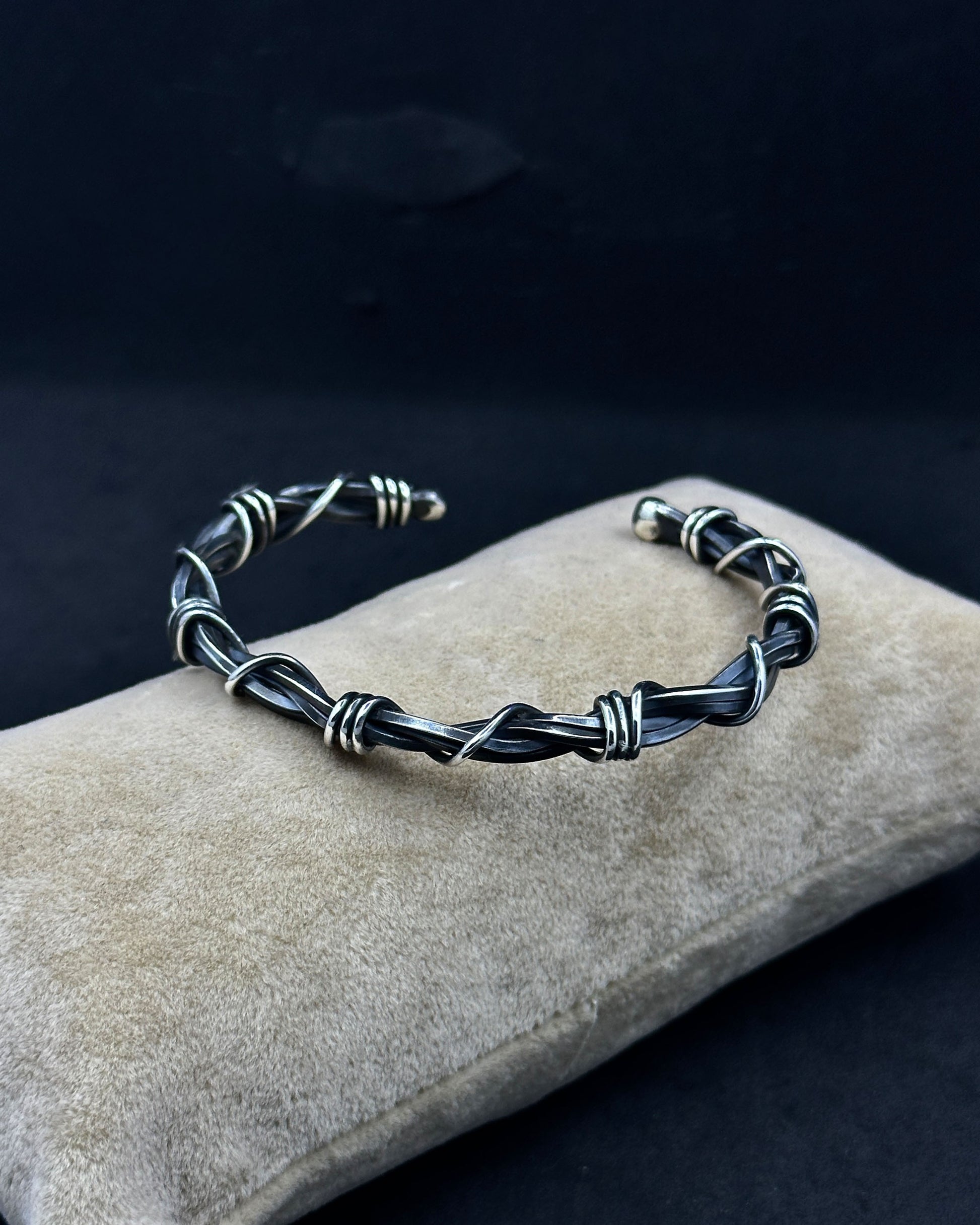 Diken Tel Örgü Gothic Bilezik – Ayarlanabilir 925 Ayar Gümüş