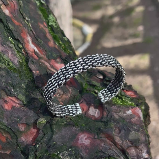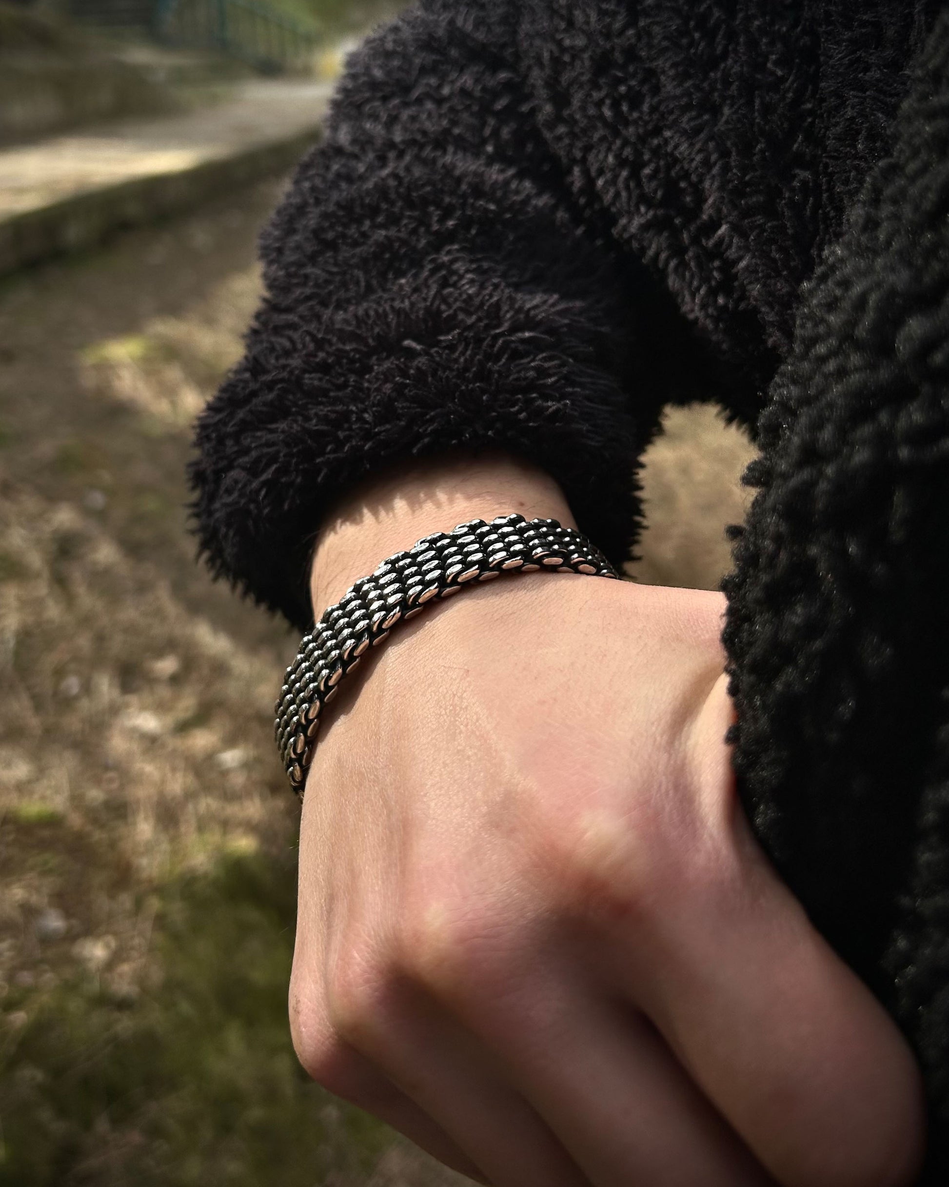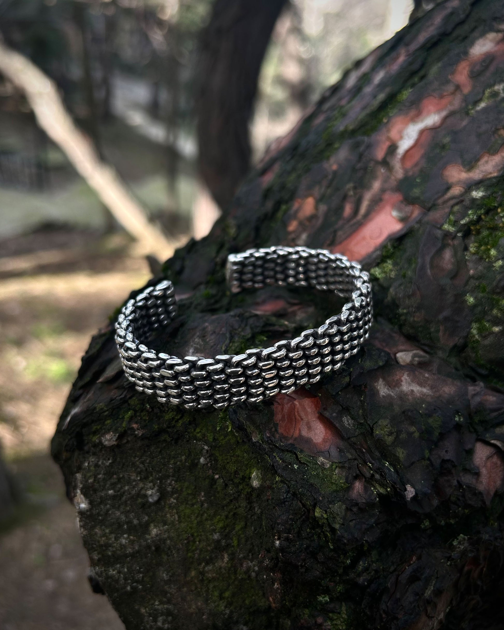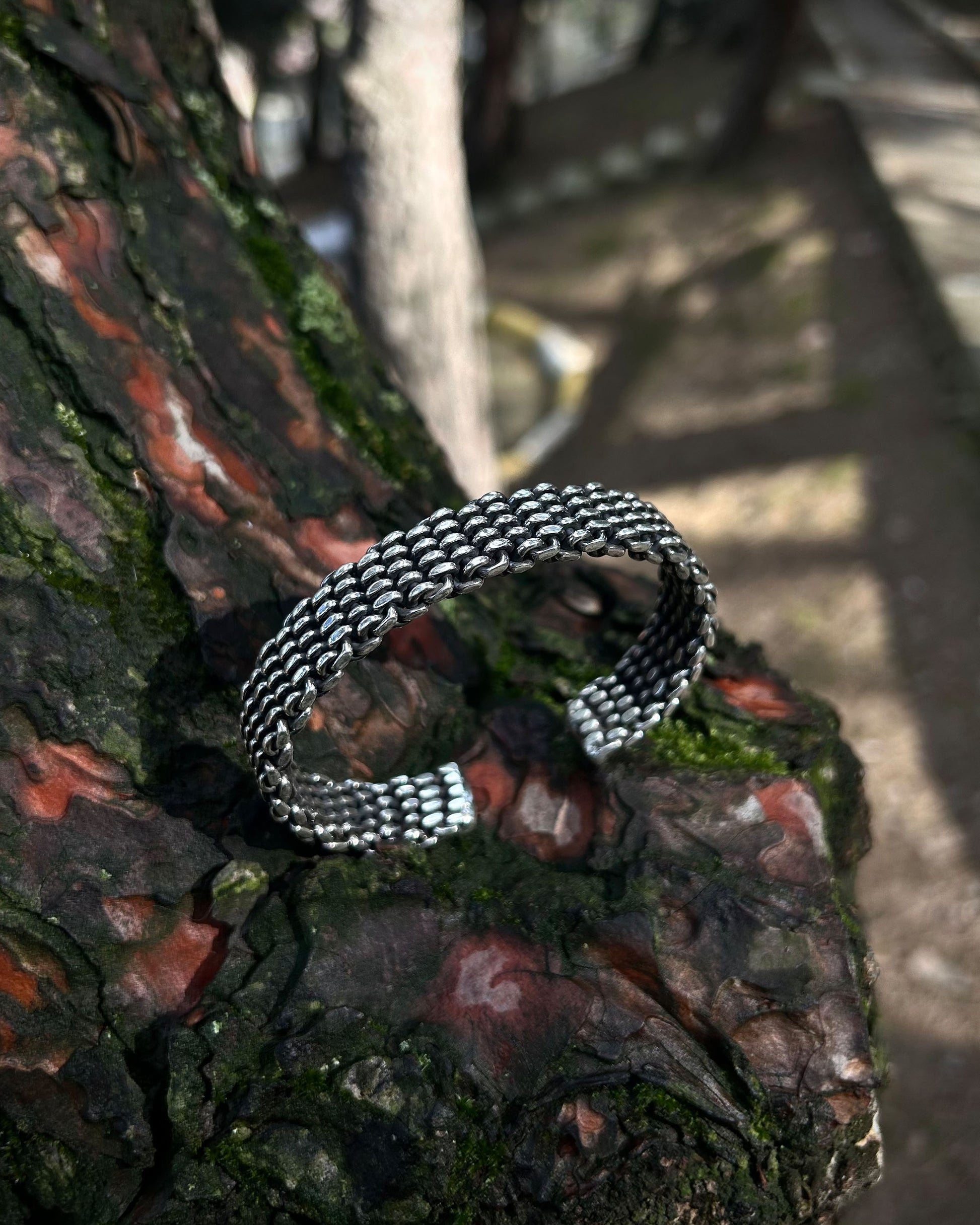 Zincir Zırh Kelepçe Bilezik - Ayarlanabilir 925 Ayar Gümüş