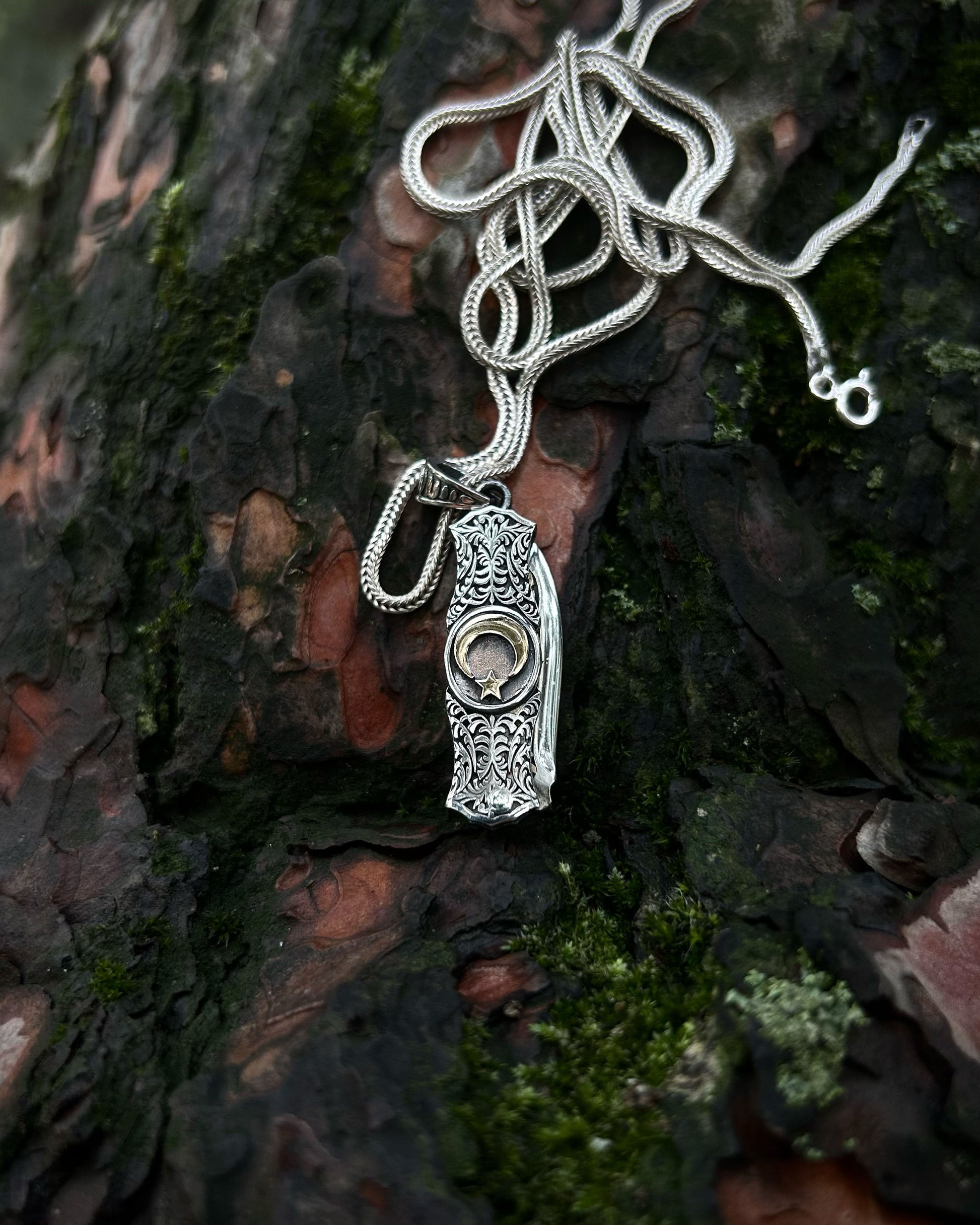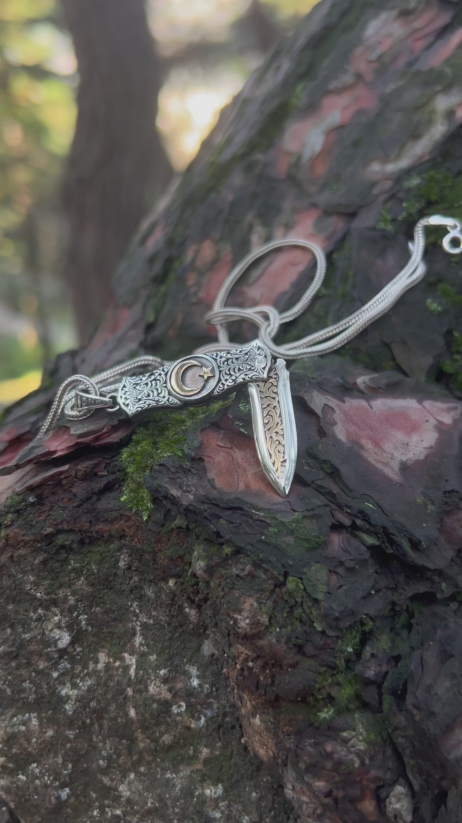 Ay Yıldız İşlemeli Katlanır Bıçak Kolye – 925 Ayar Gümüş