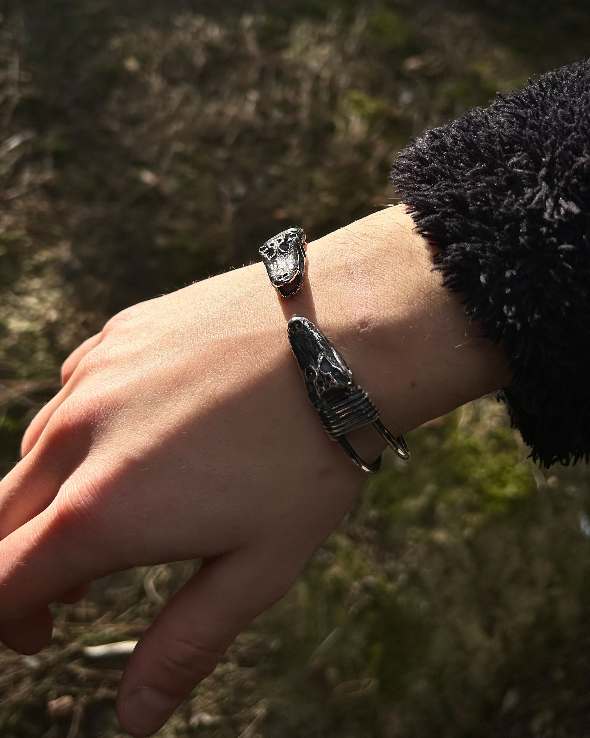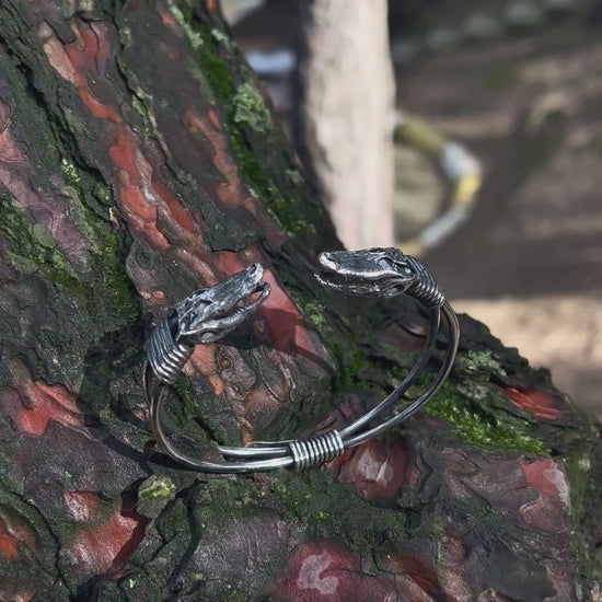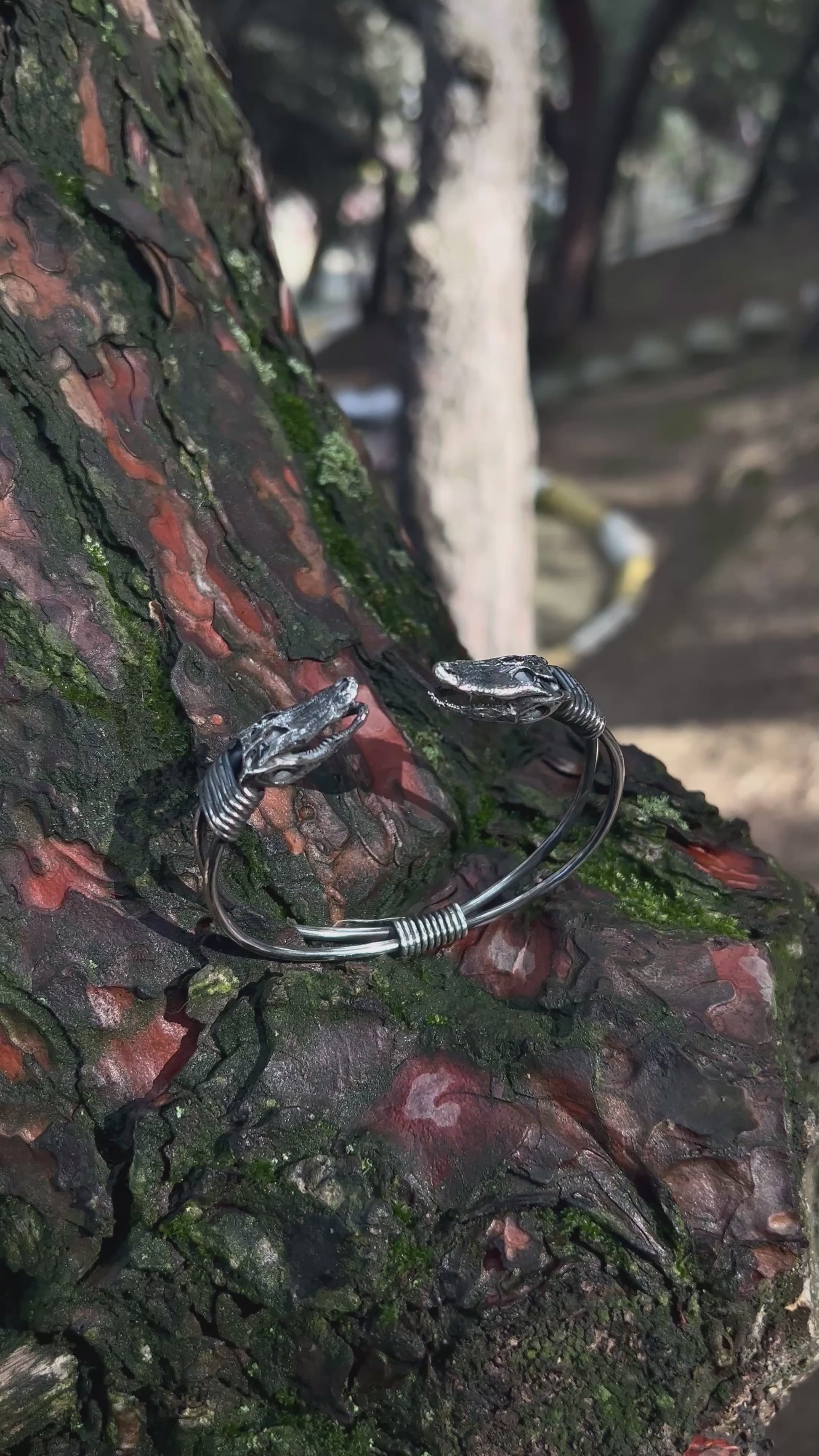 Pek çok kültürde timsahlar; koruma, sabır ve hayatta kalma içgüdüsünü temsil eder. Mitoloji ve kabile sanatında köklü bir yer tutar. Bu el yapımı kelepçe bileklik, detaylı işlenmiş çift timsah başı motifiyle güç, direnç ve ilkel kuvveti simgeler. Ayarlanabilir yapısıyla konforlu bir kullanımı sağlar. ◀