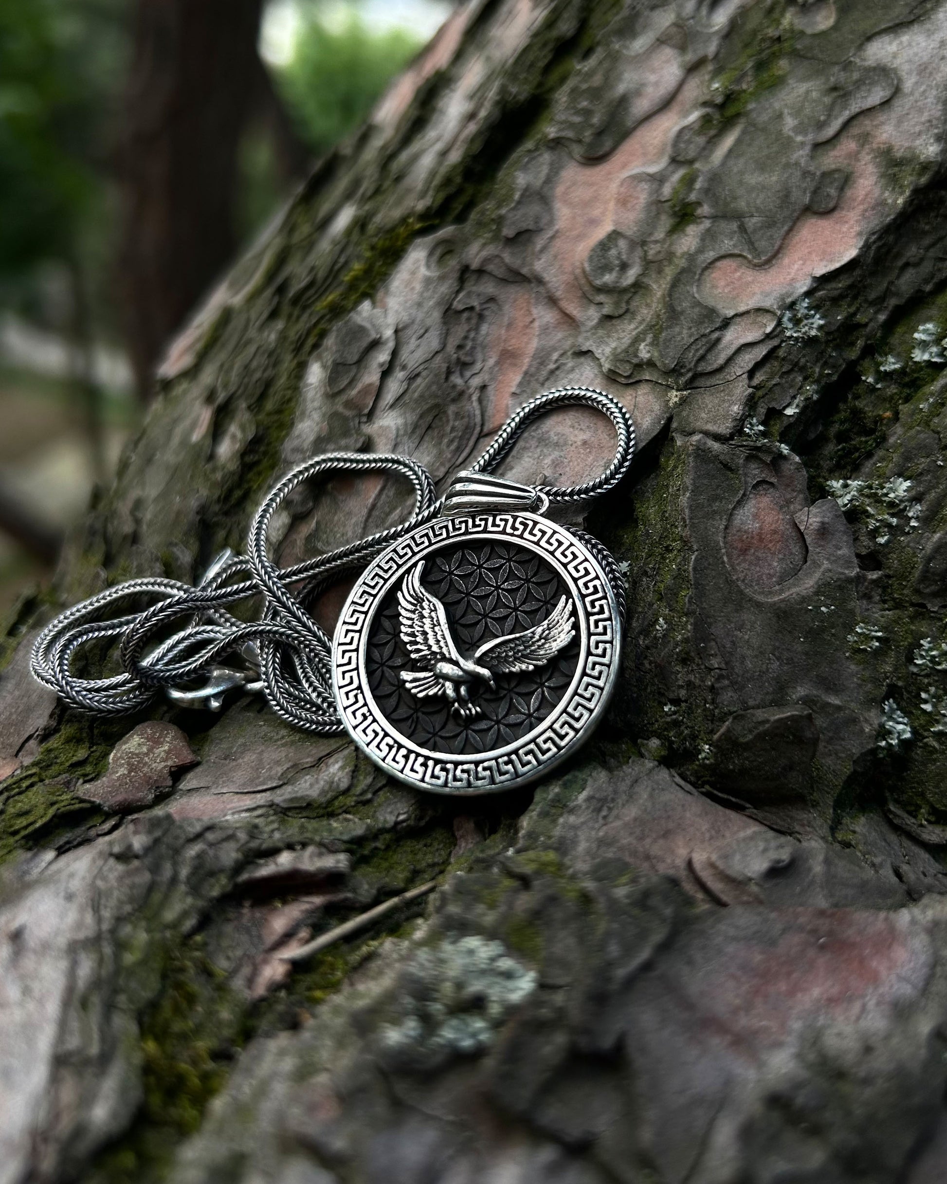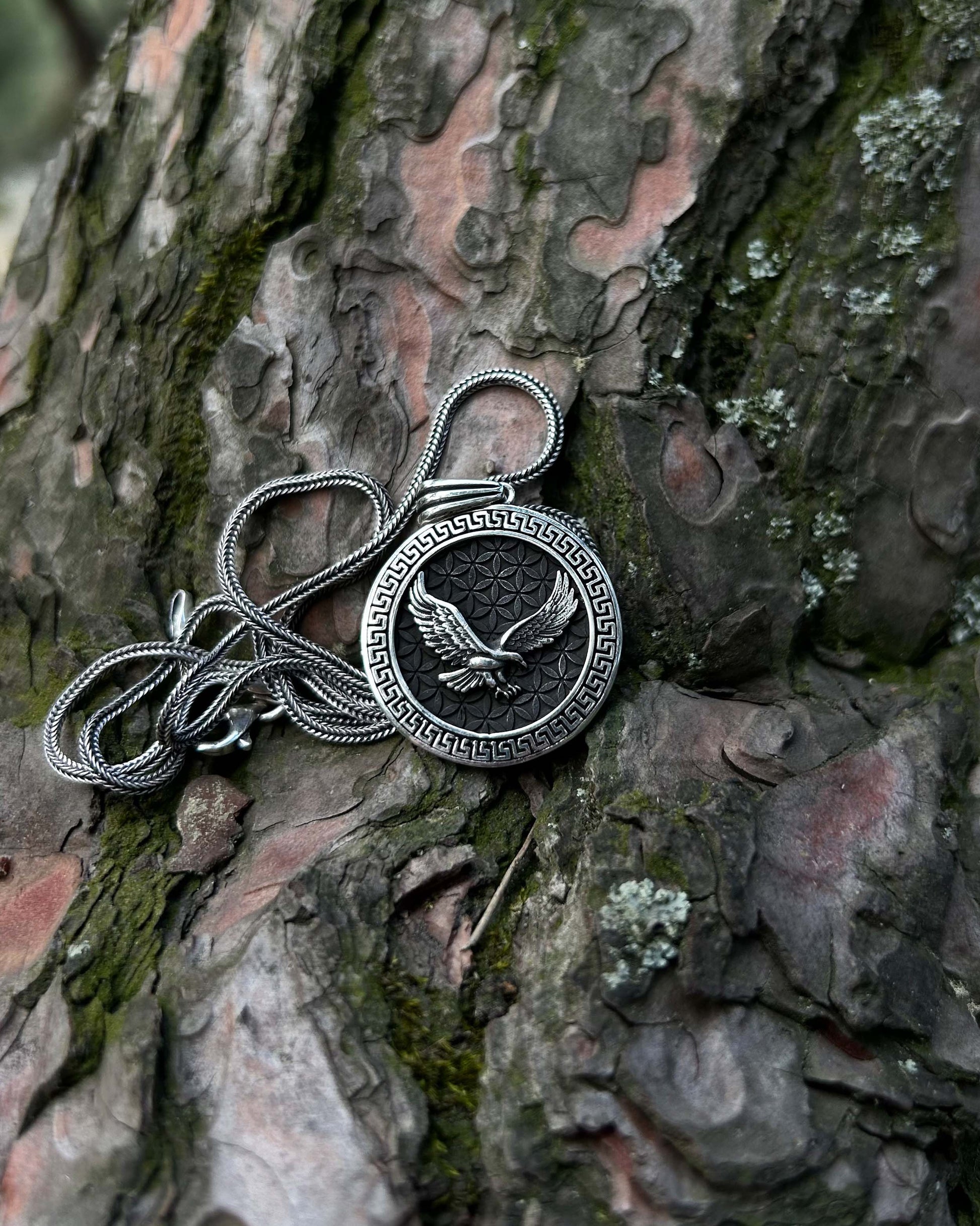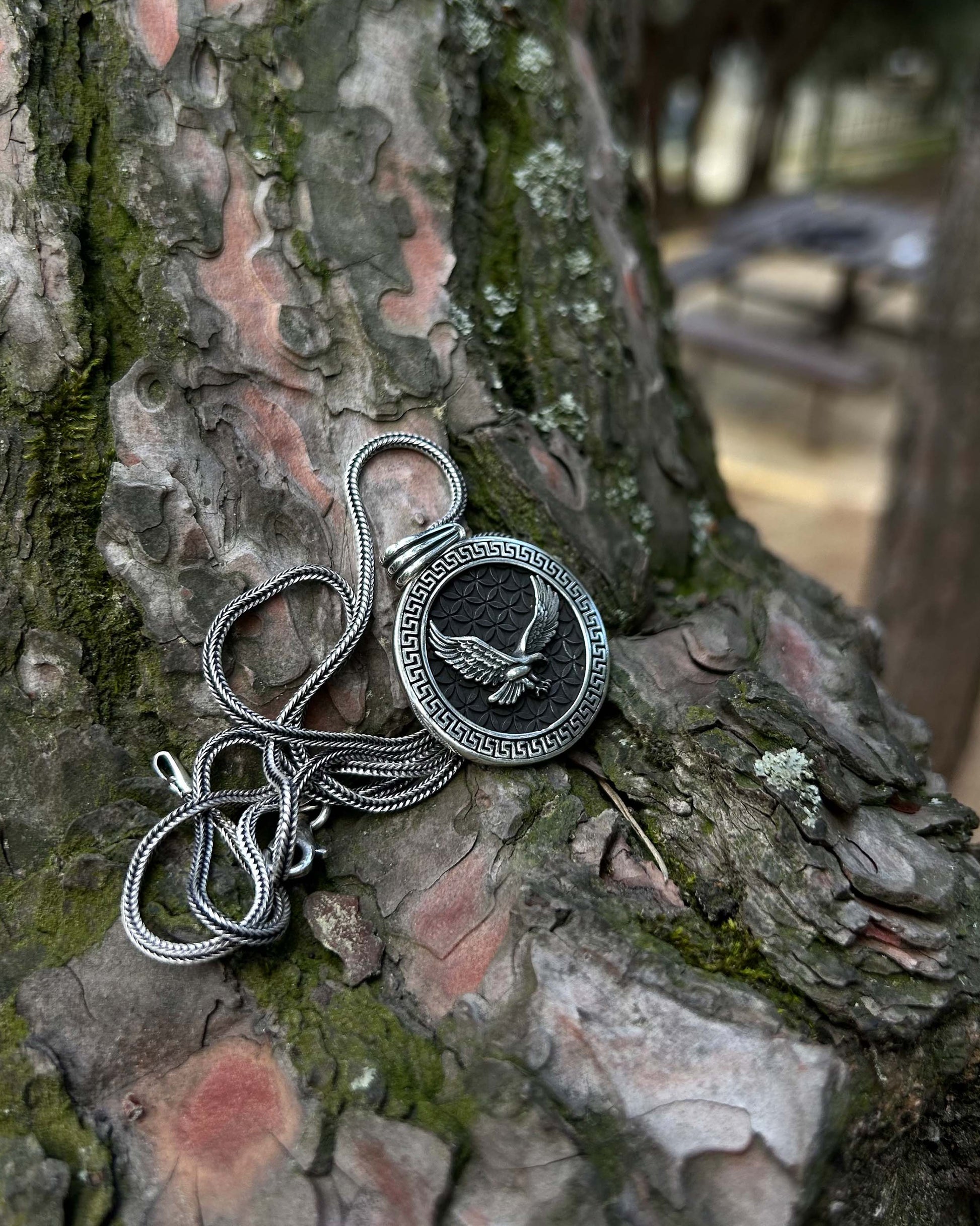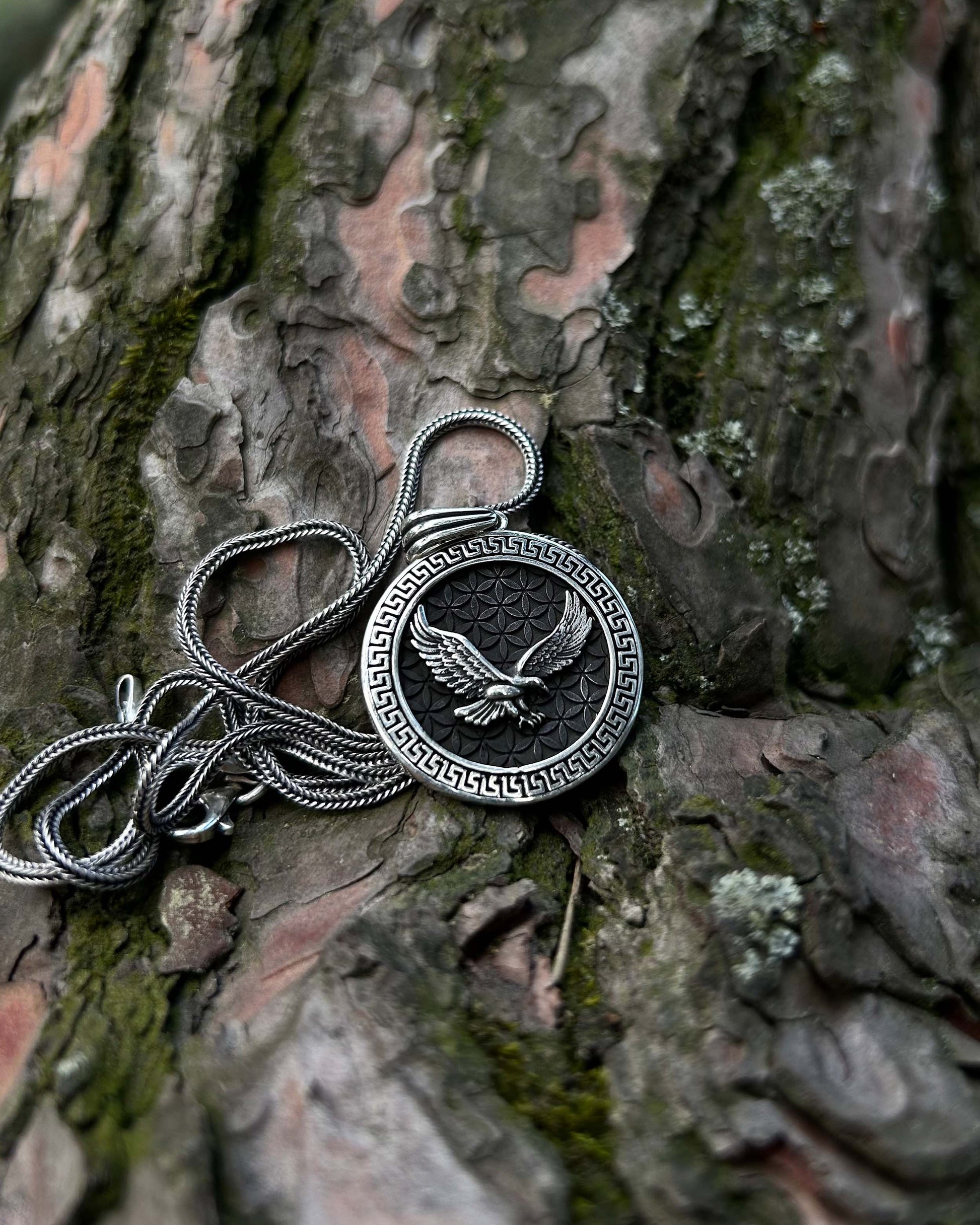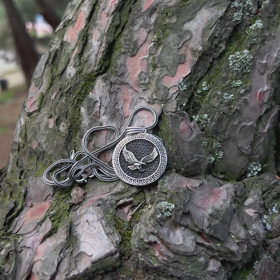 Bu 925 ayar gümüşten el işçiliğiyle üretilmiş madalyon kolye, güç, cesaret ve yüksek bilinç gibi sembolik anlamlar taşır. Antik Roma’dan günümüze, kartal figürü otorite ve özgürlüğün evrensel simgesidir.