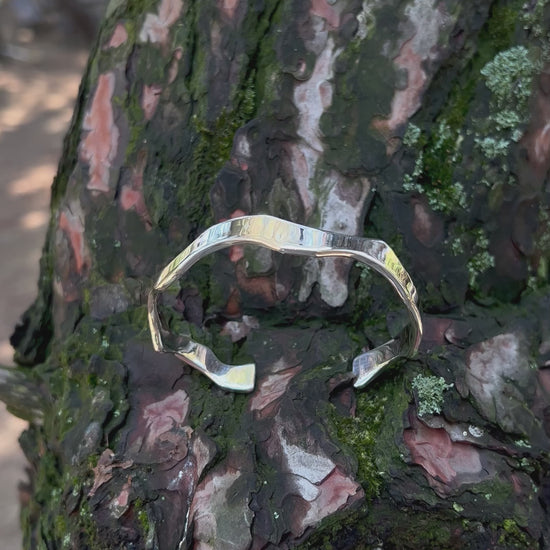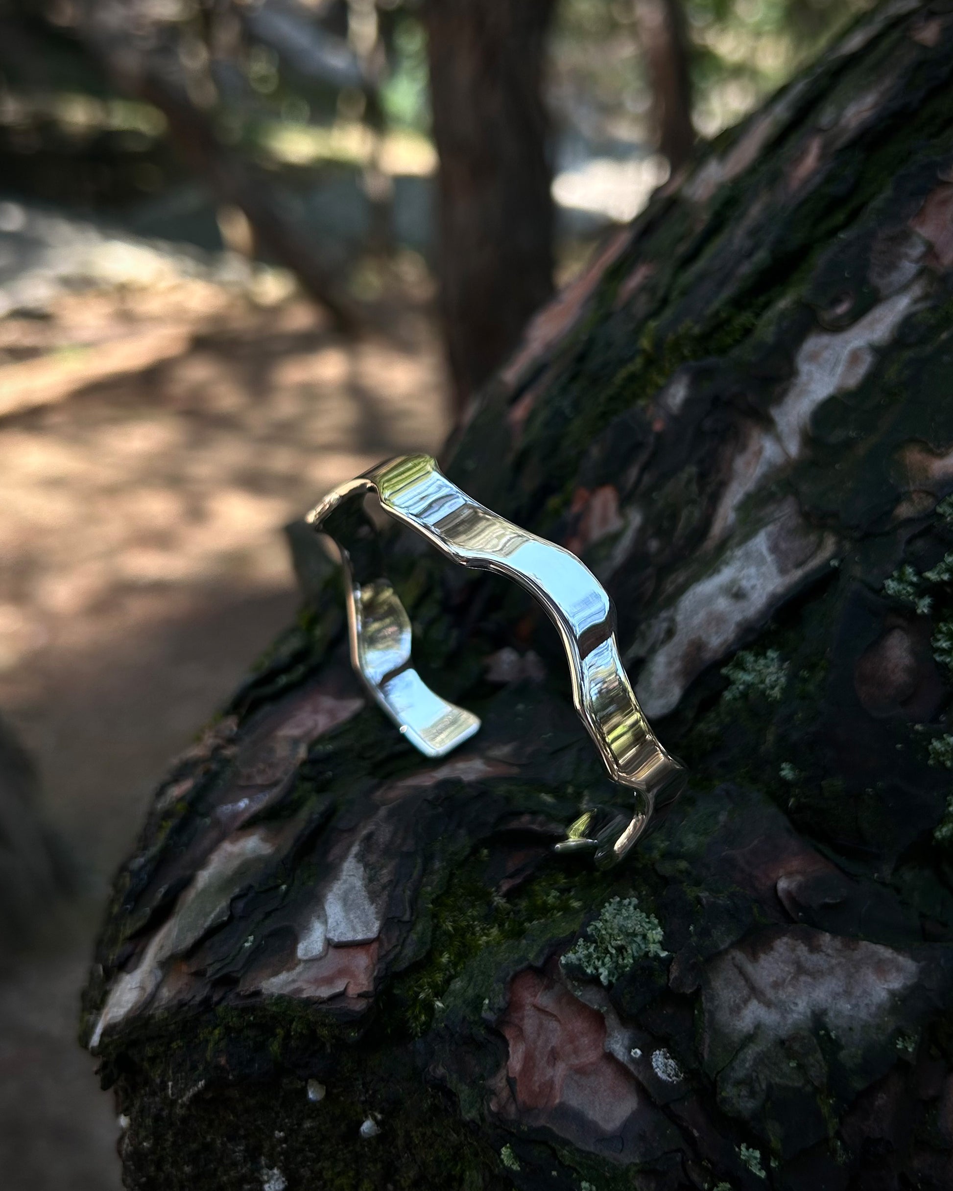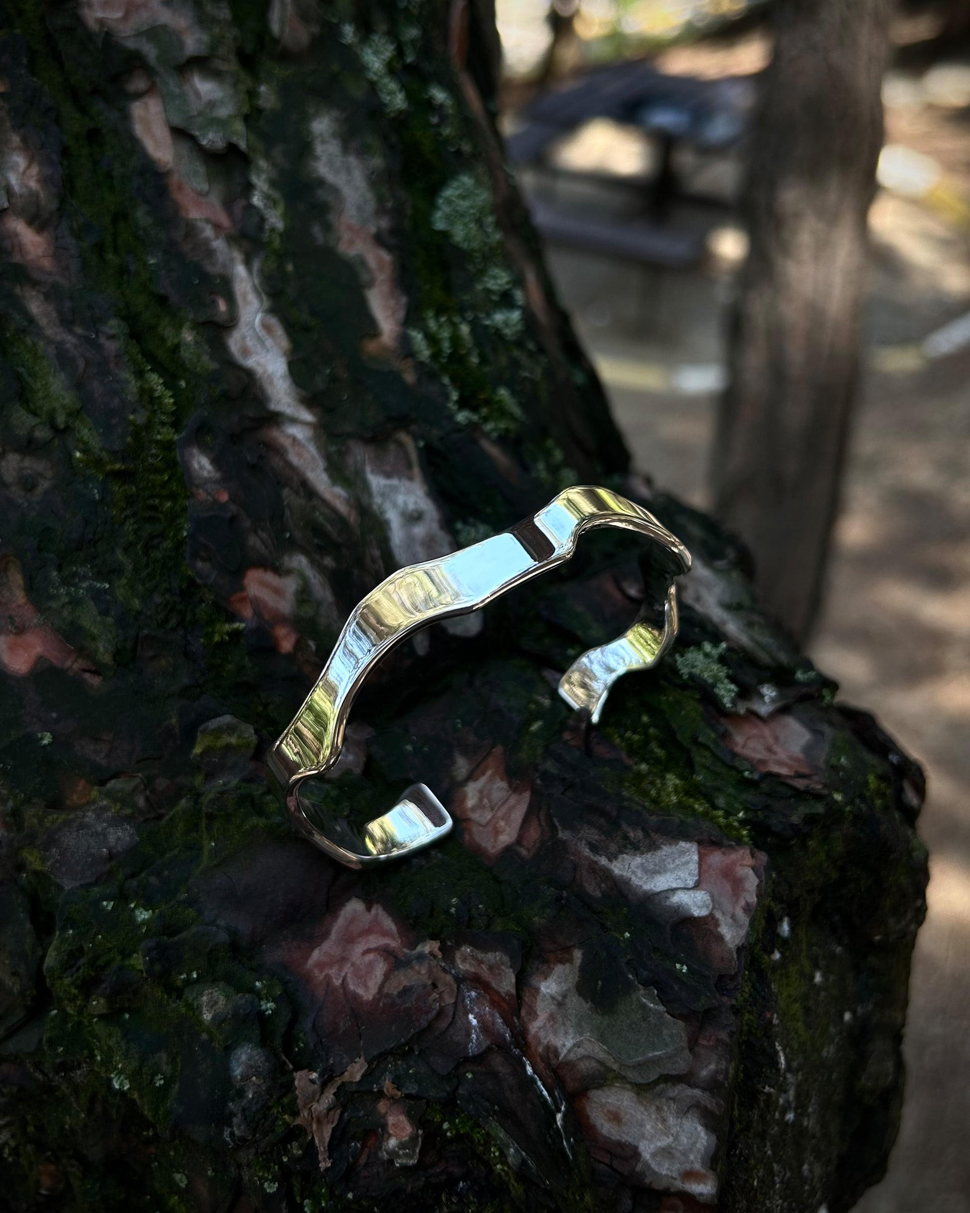 925 ayar gümüşten üretilmiş bu bilezik, zarif dalgalı tasarımıyla öne çıkar. Ayarlanabilir yapısı sayesinde farklı bilek ölçülerine uyum sağlar.