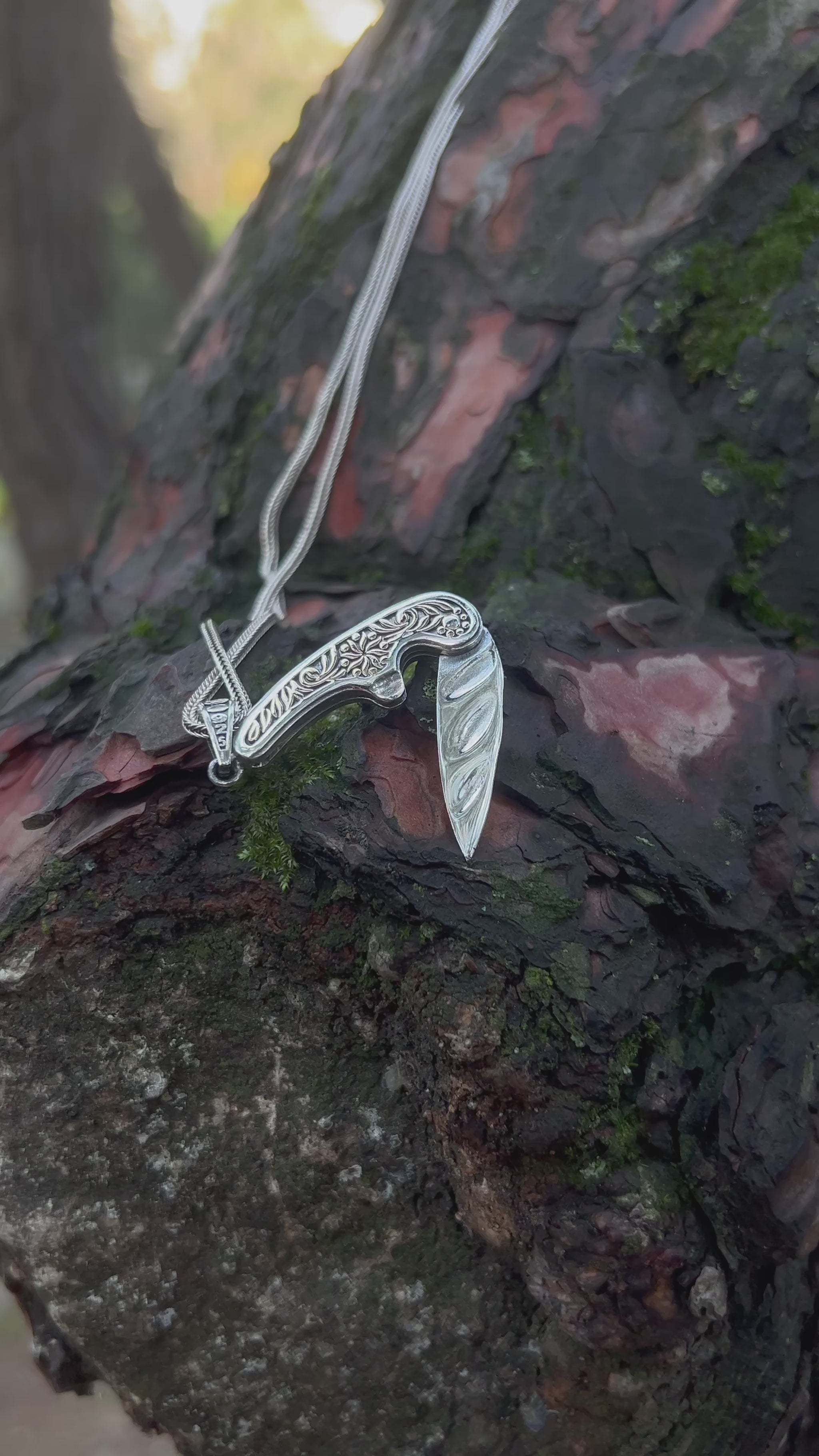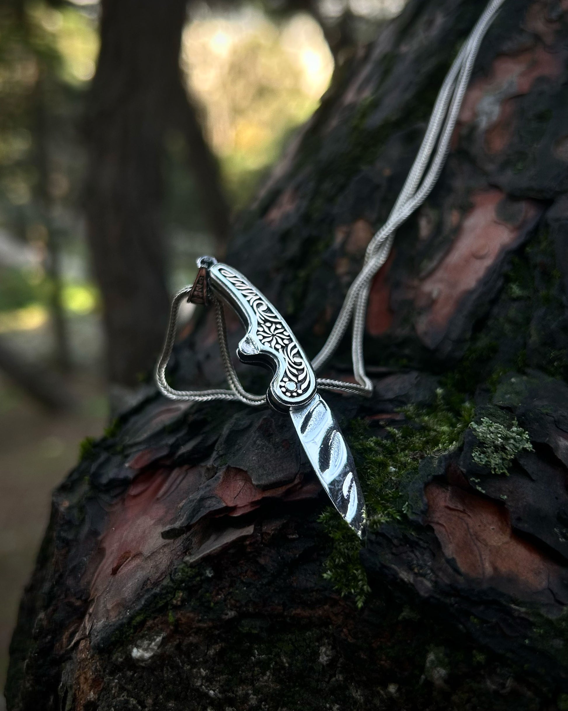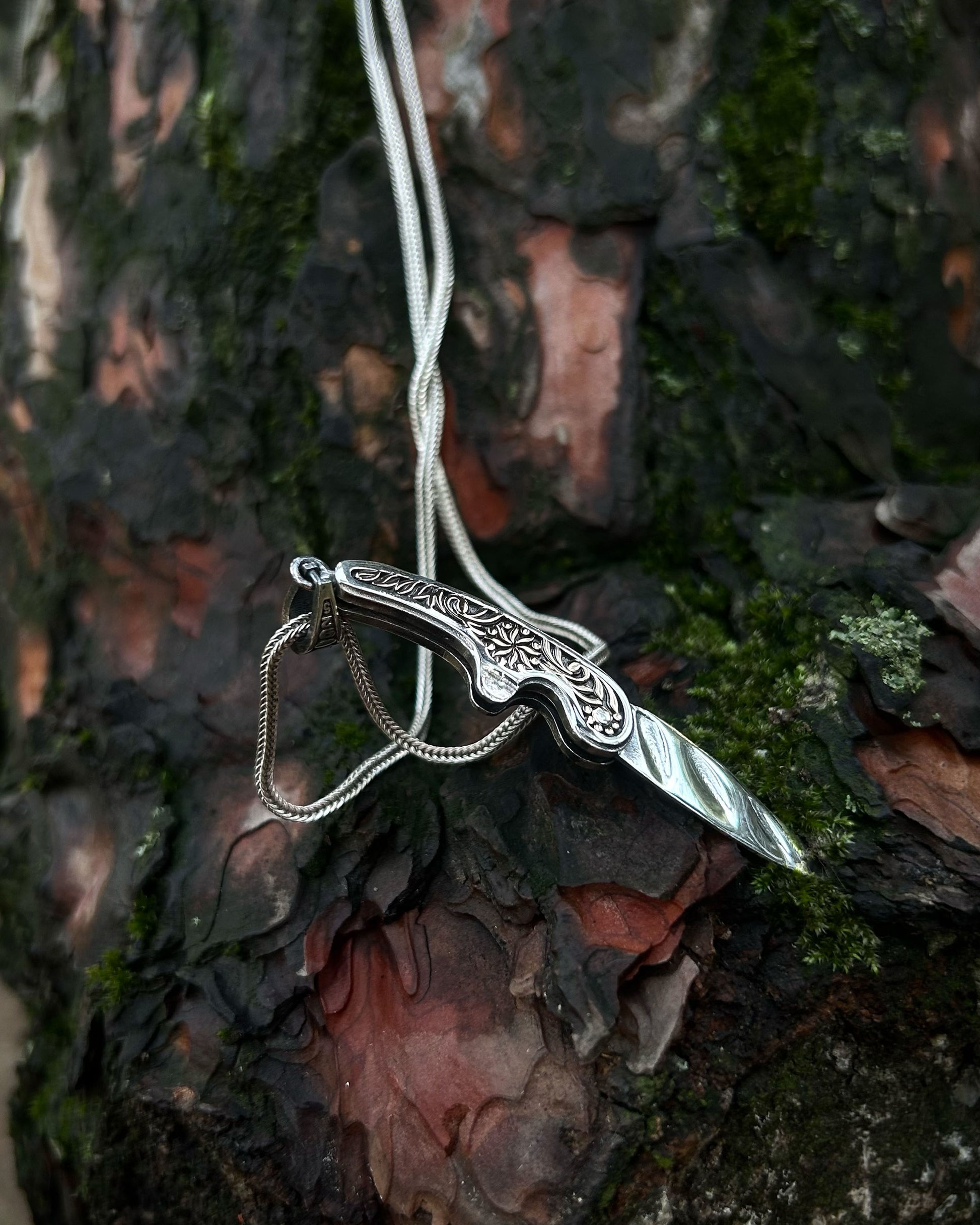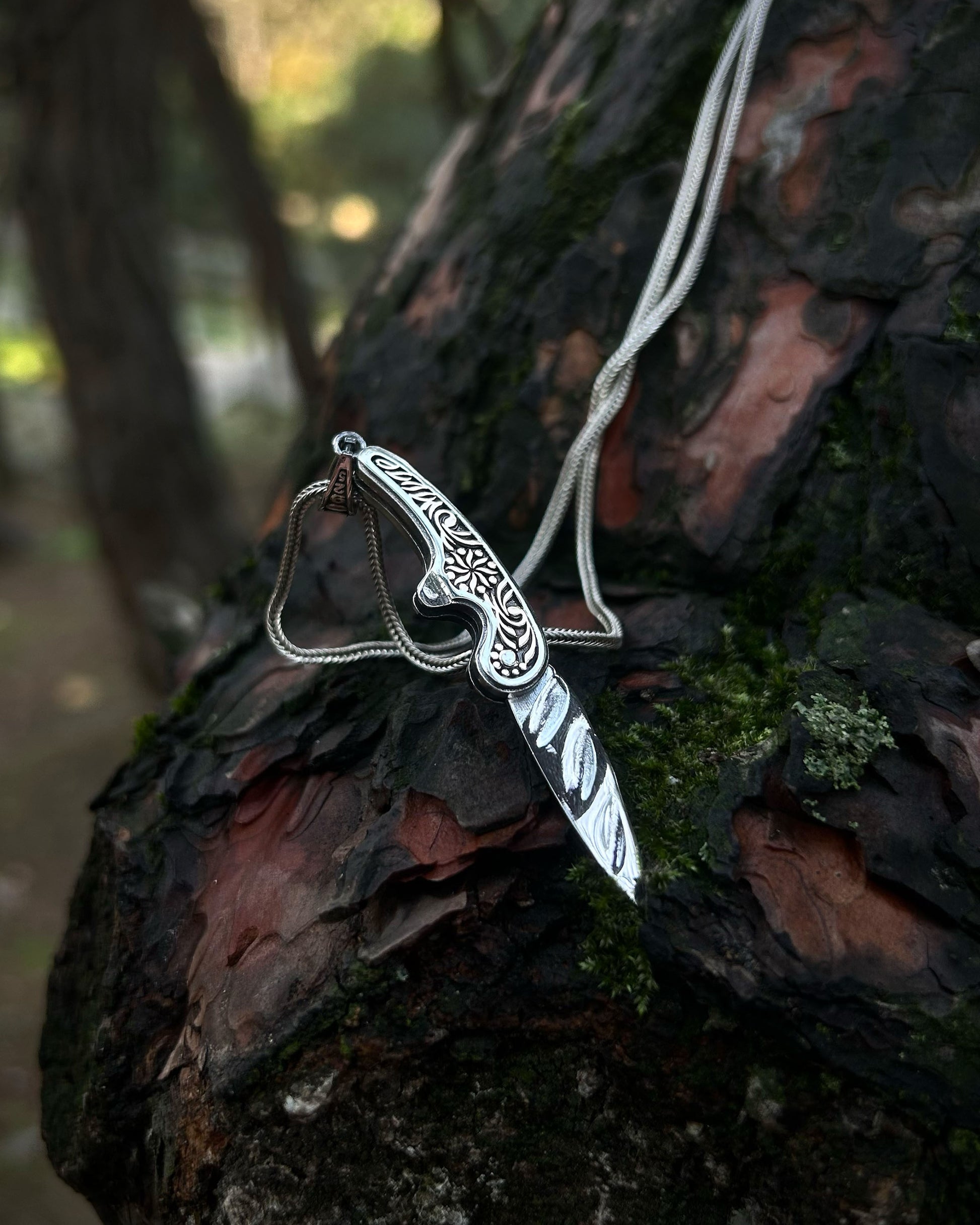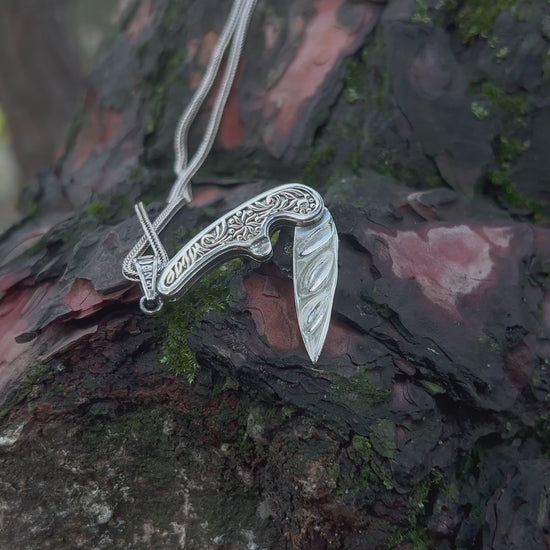 İşlemeli Katlanır Bıçak Kolye – 925 Ayar Gümüş