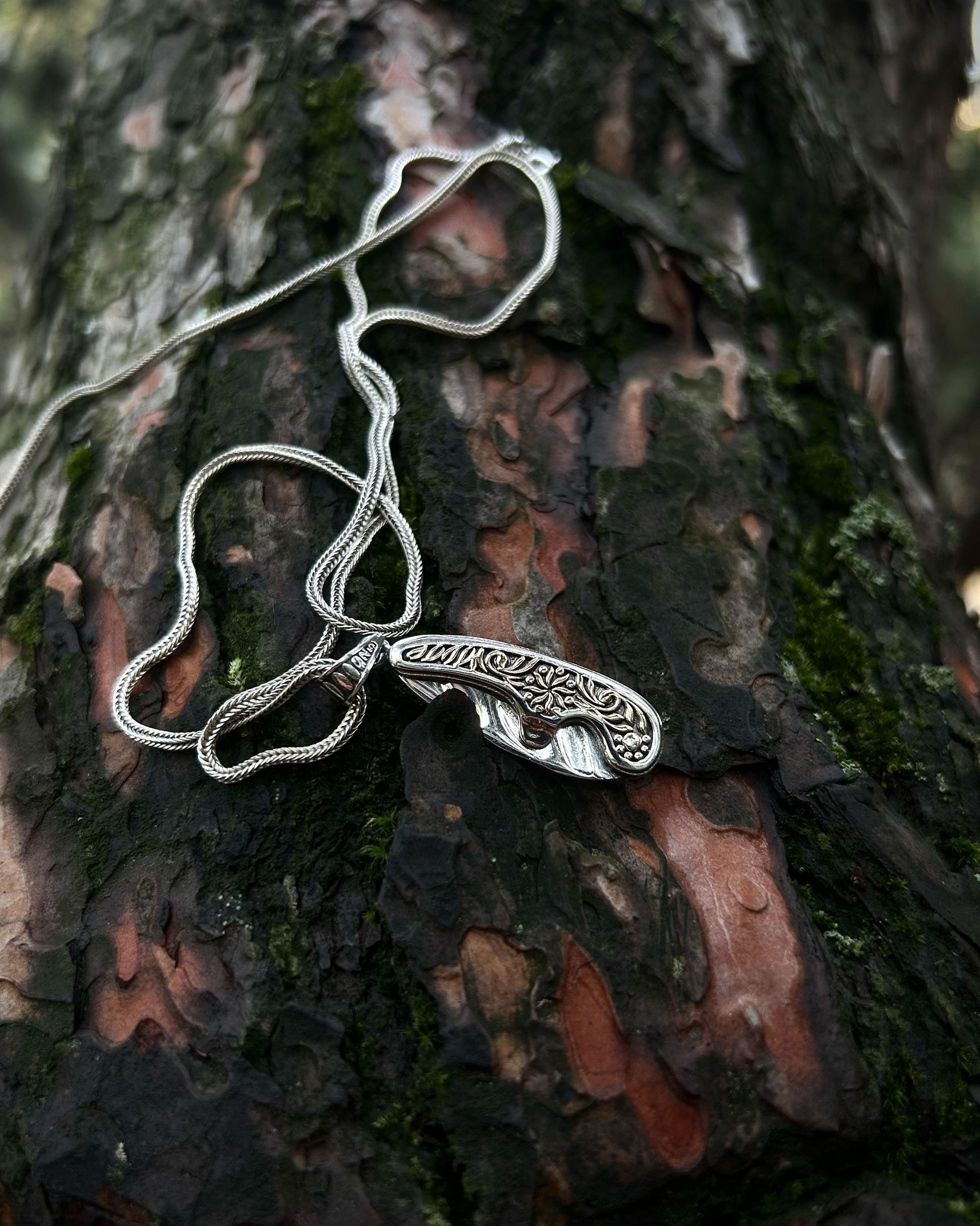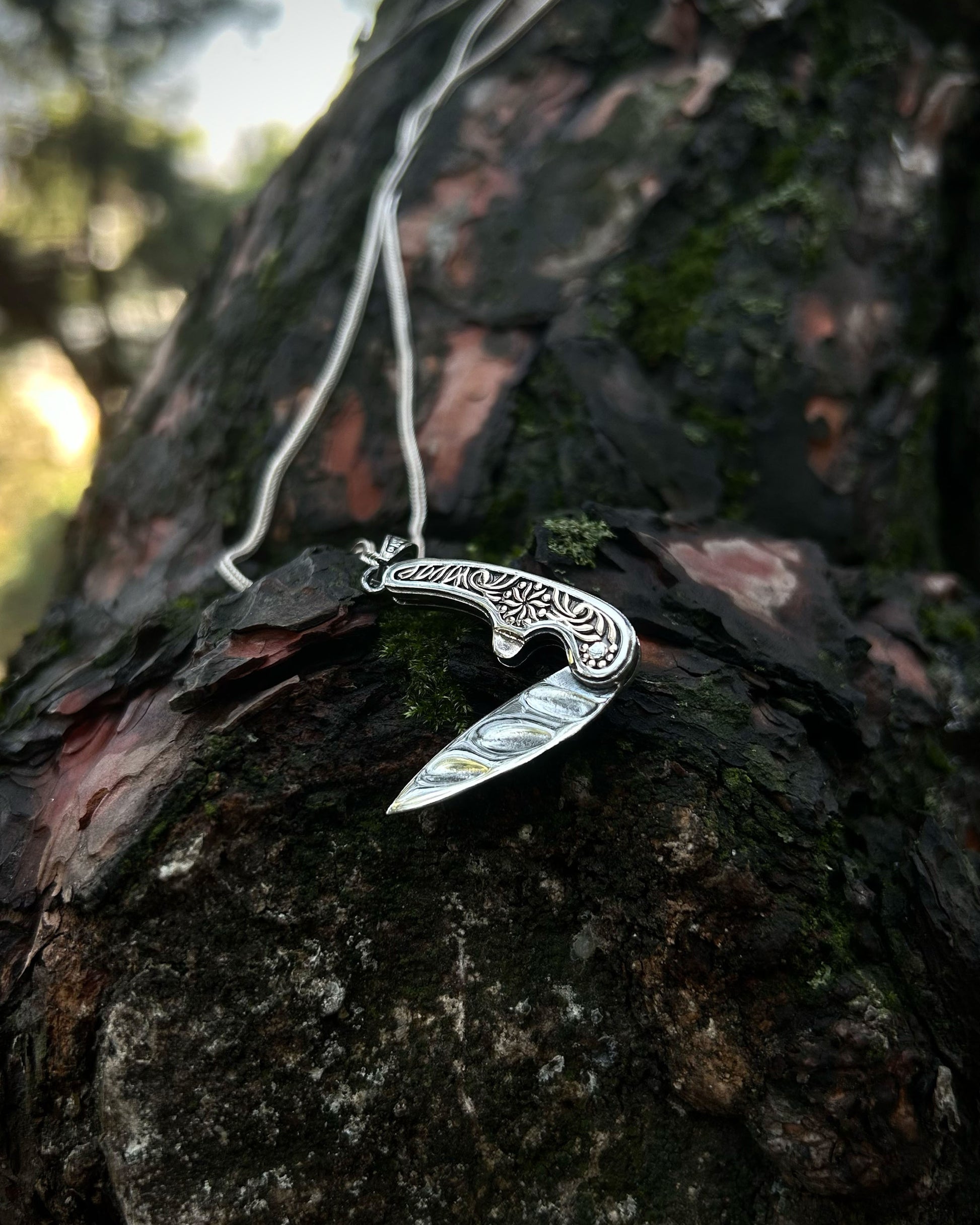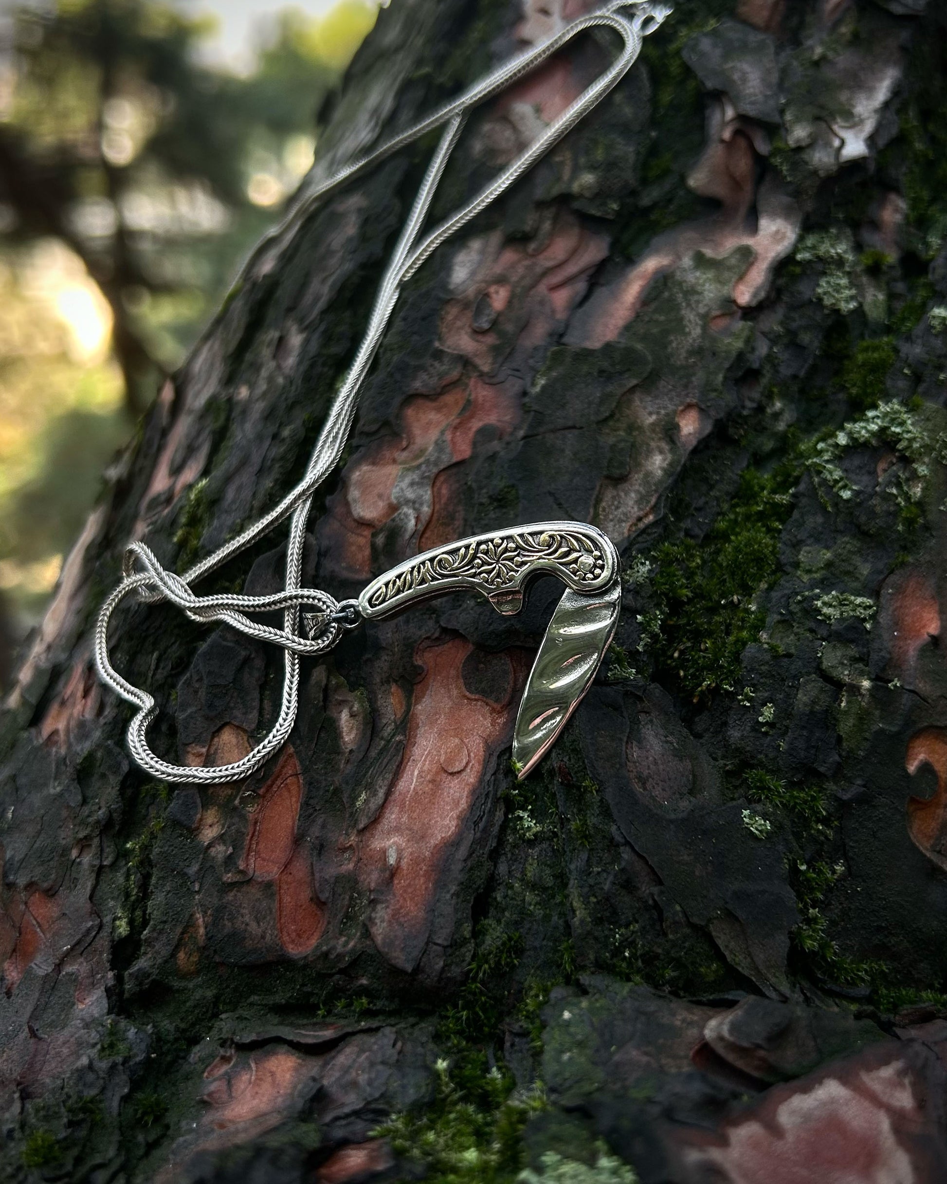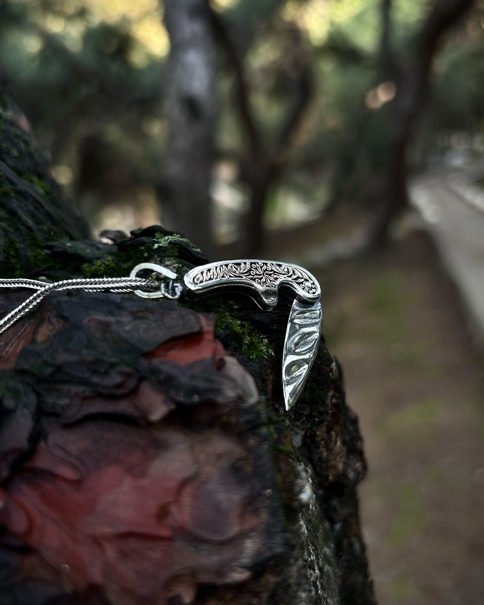İşlemeli Katlanır Bıçak Kolye – 925 Ayar Gümüş