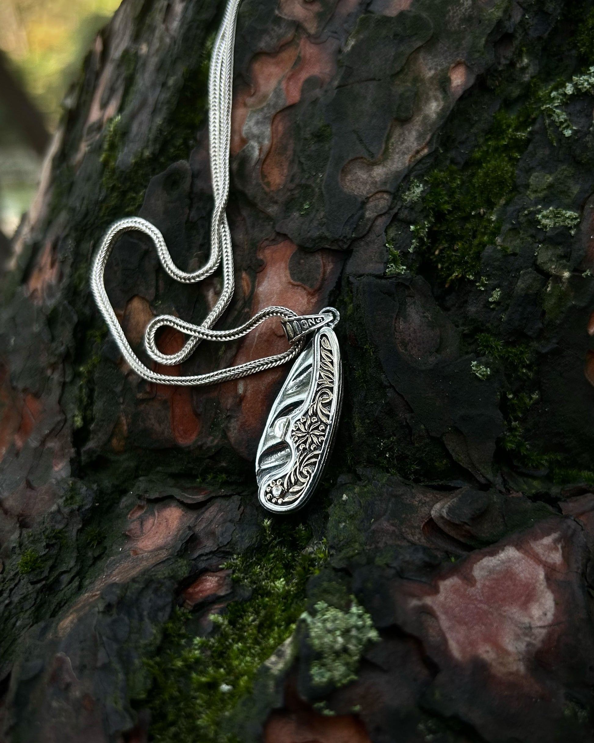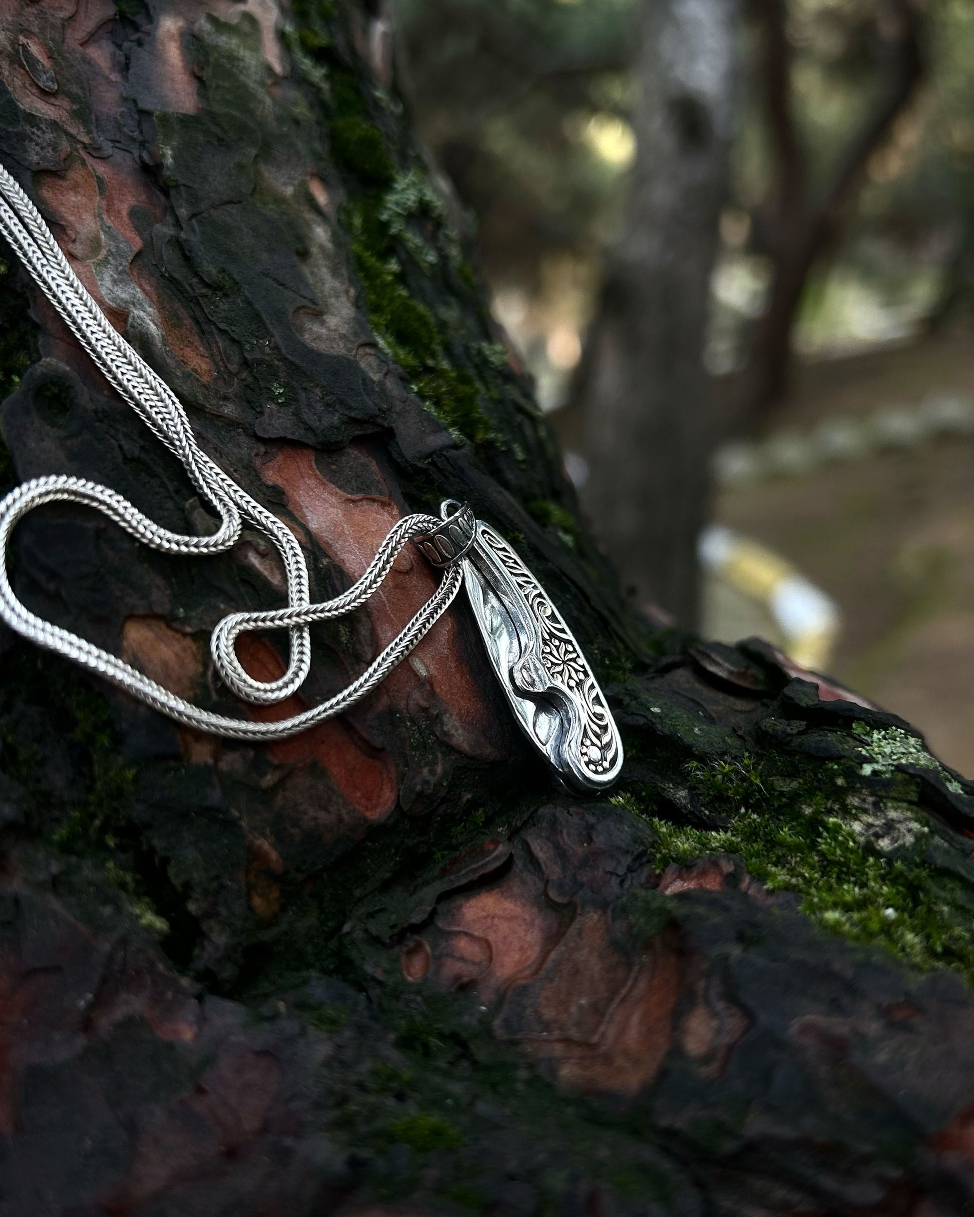 Geleneksel el işçiliği ve şaşırtıcı bir mekanizma bu tasarımda buluşuyor. 925 ayar gümüşten üretilen bu İşlemeli Katlanır Bıçak Kolye, üzerindeki detaylı kalem işi motiflerle göz kamaştırır. Gerçek bir çakı gibi açılıp kapanabilen bu hareketli tasarım, sıradan aksesuarlardan sıkılanlar ve çakı kolye tutkunları için cesur, keskin ve özgün bir stil ifadesidir.