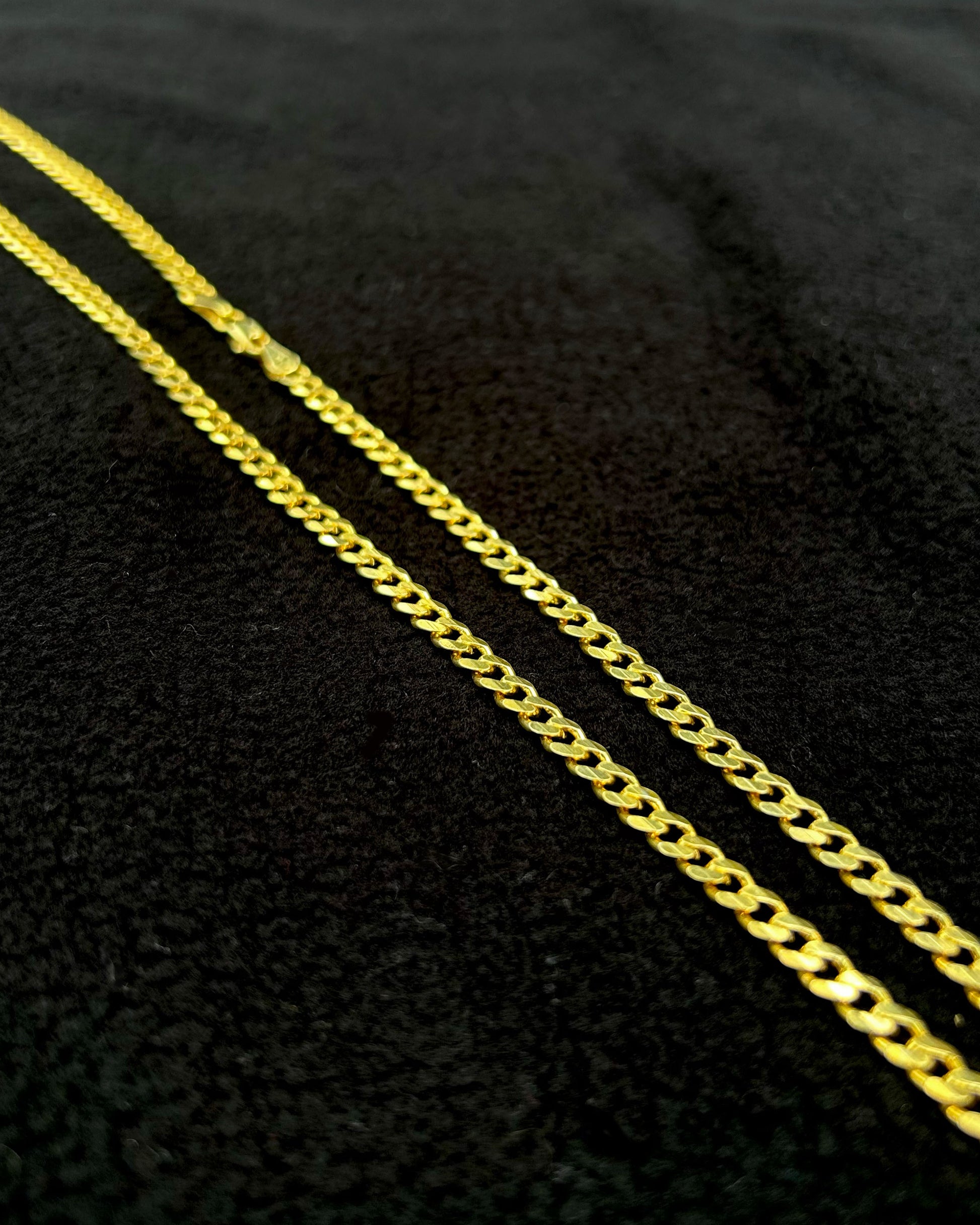 925 ayar gümüşten üretilmiş bu zincir, klasik Gourmet (Cuban) formuna ve 22 ayar altın kaplama yüzeye sahiptir. Standart kaplamalara göre altın oranı daha yüksek bir altın kaplamadır.