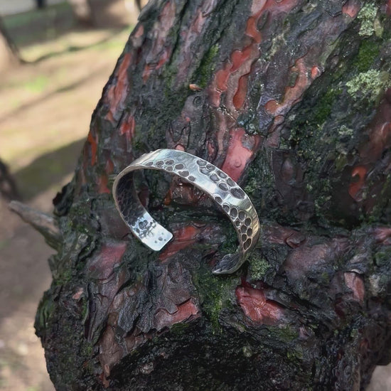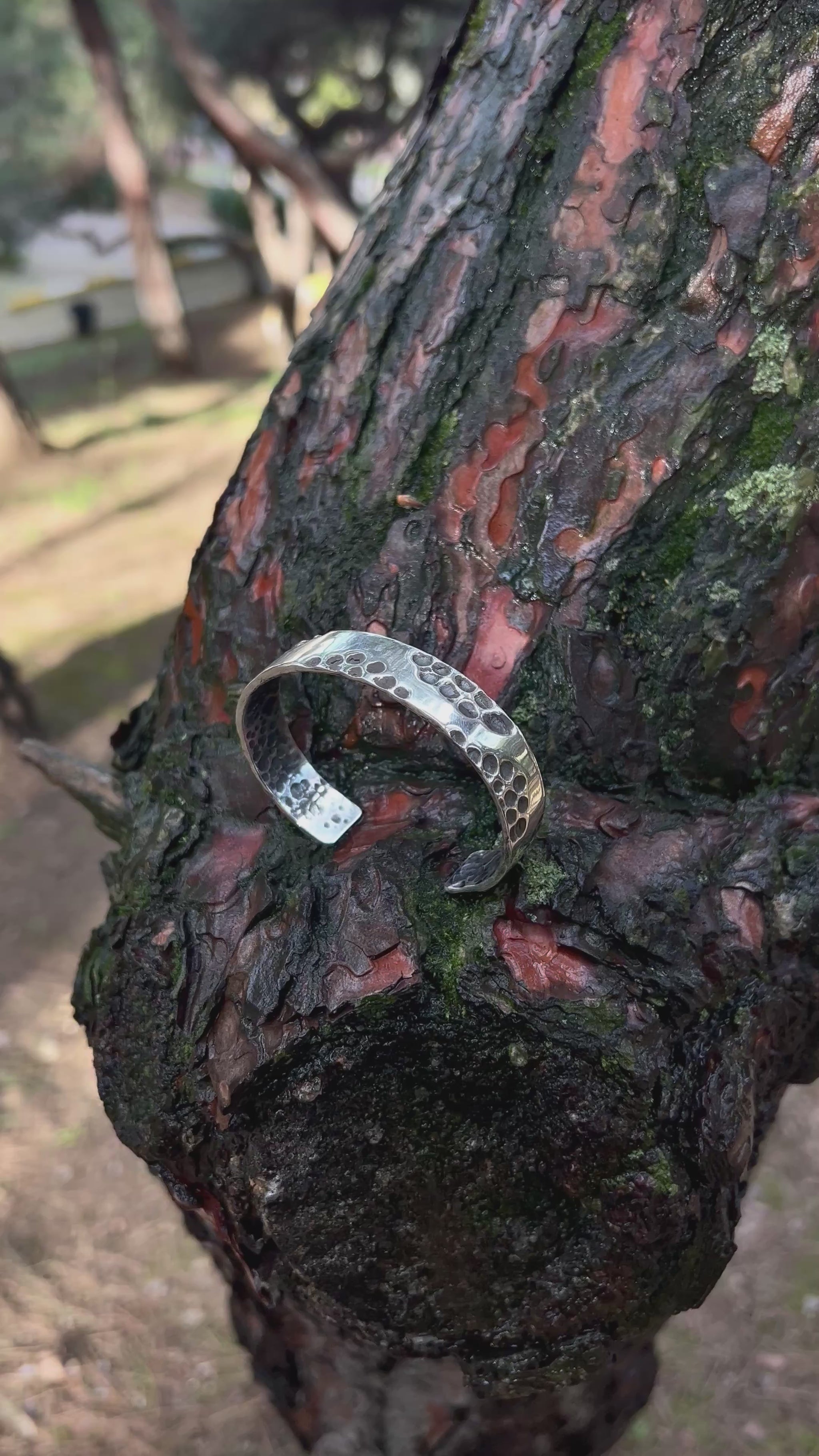 El Yapımı Dövme Gümüş Kelepçe Bilezik – Ayarlanabilir 925 Ayar Gümüş
