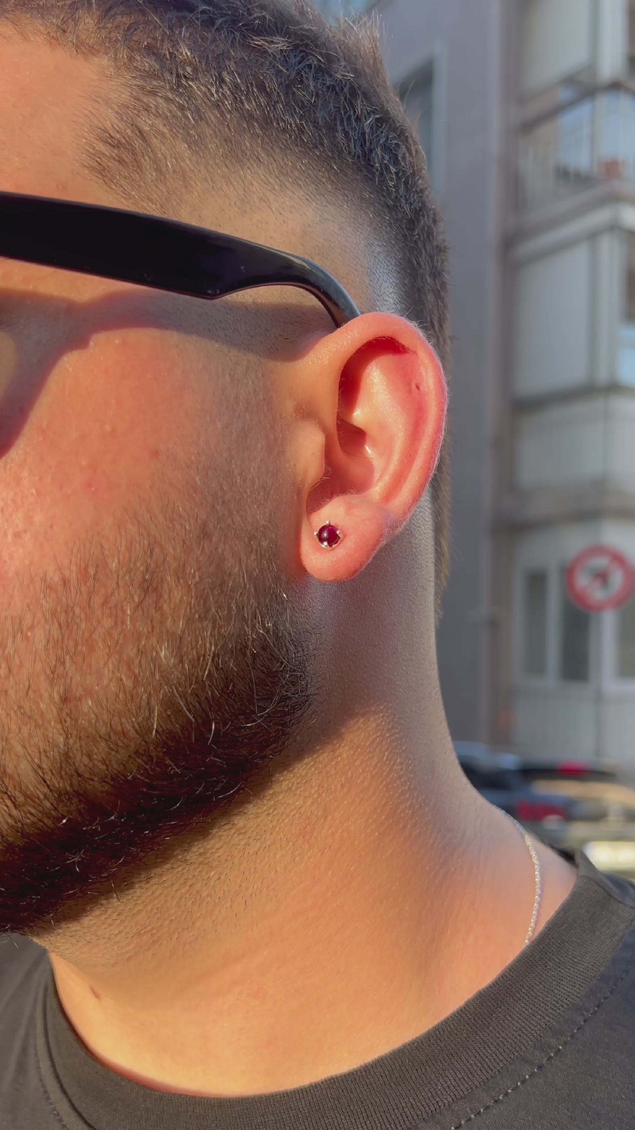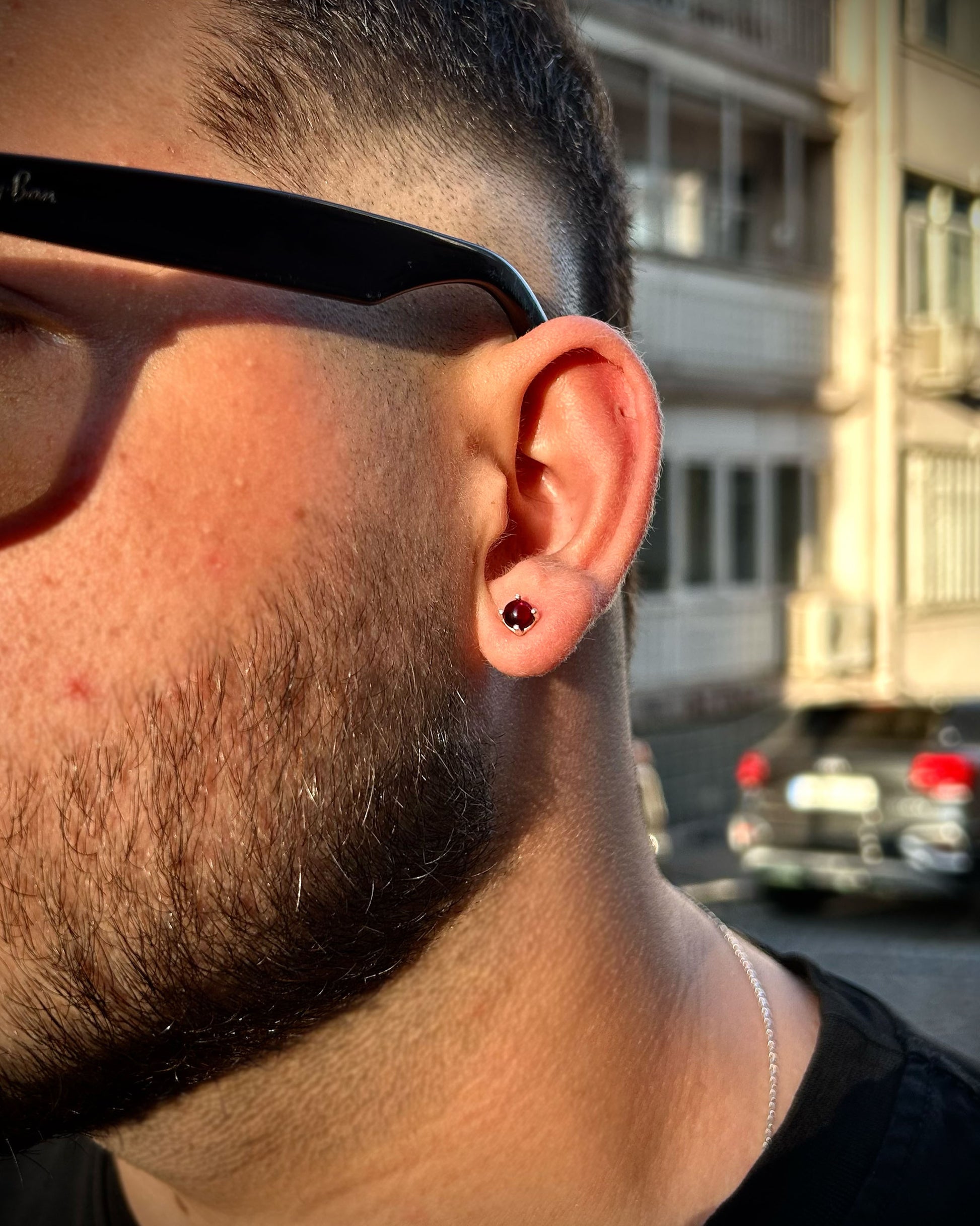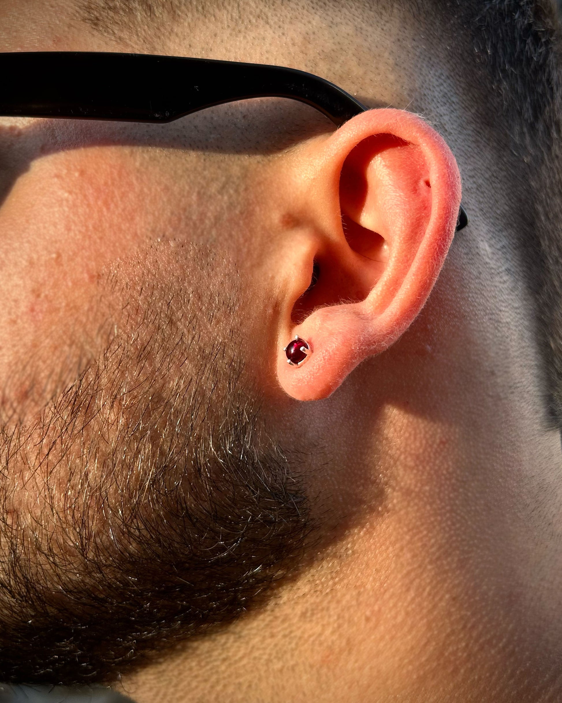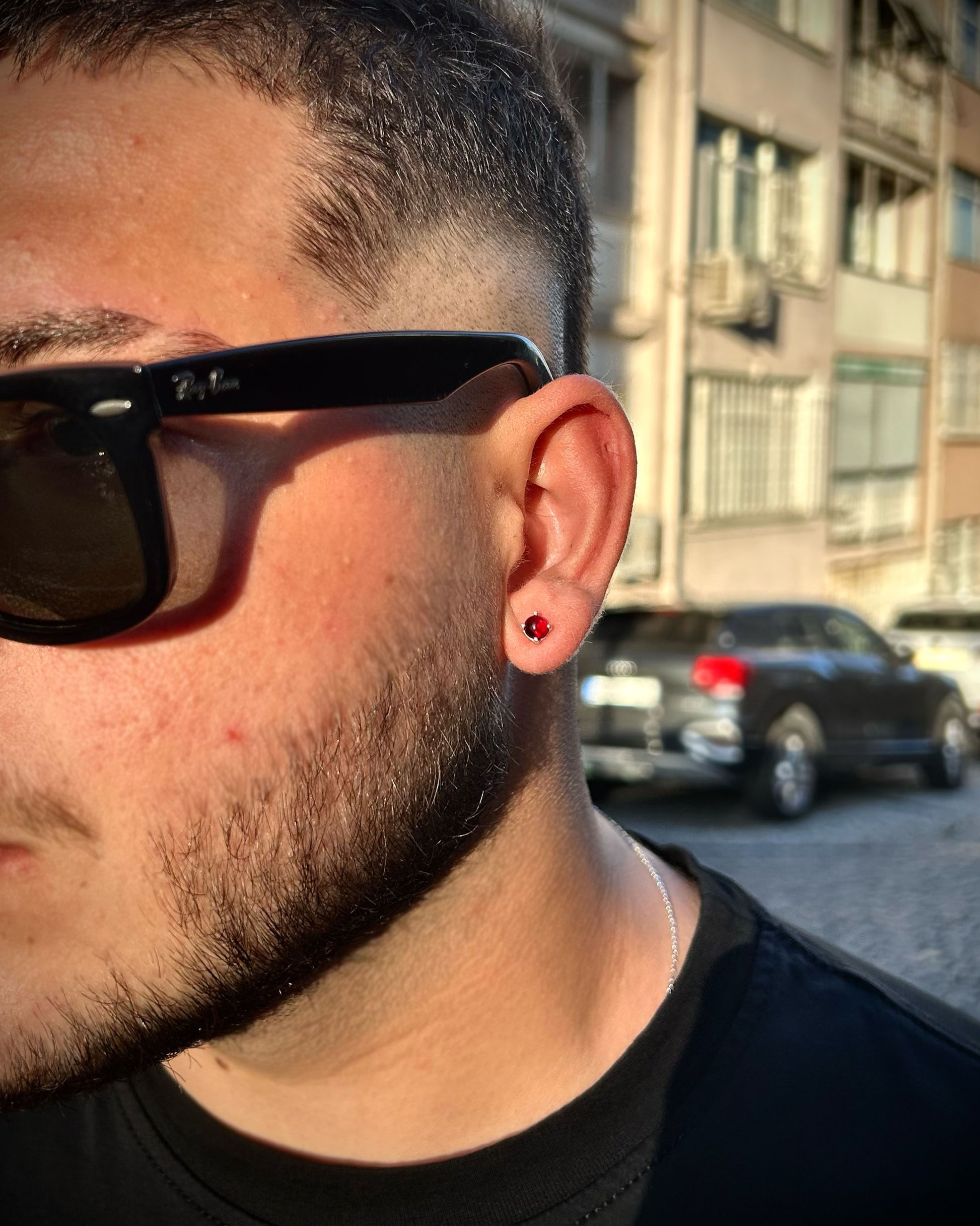 Bordo Taşlı Erkek Küpe - 925 Ayar Gümüş