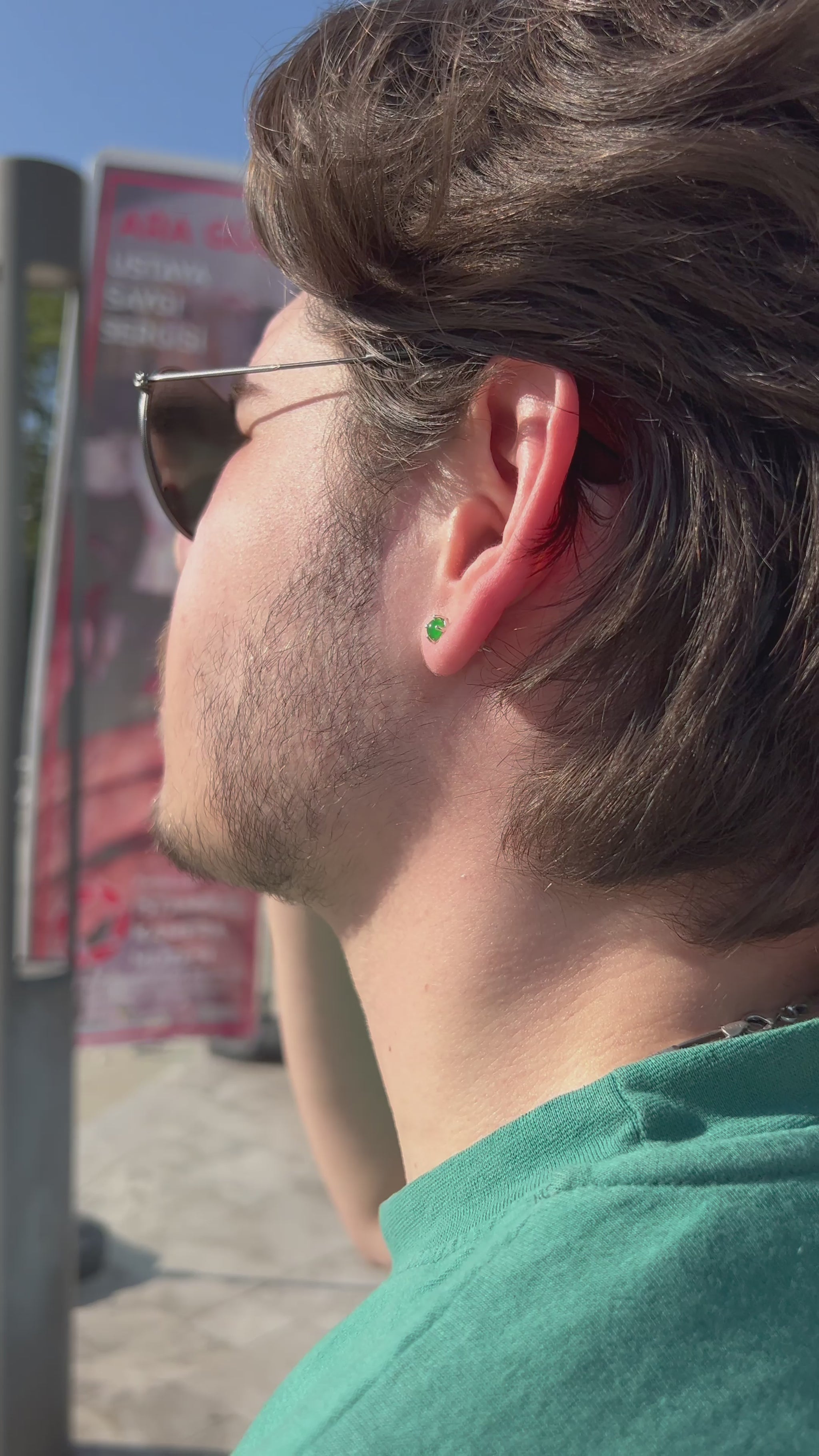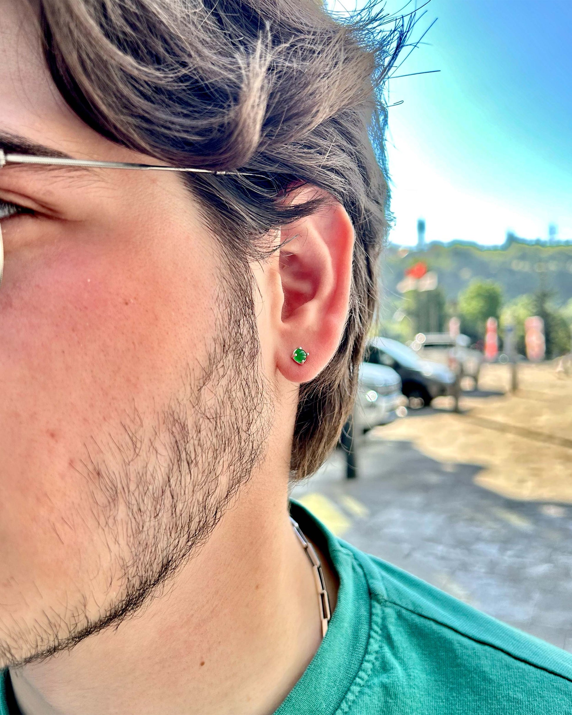 Erkekler İçin Yeşil Taşlı Minimalist Küpe – 925 Ayar Gümüş