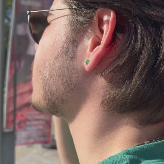 Yeşil Taşlı Erkek Küpe - 925 Ayar Gümüş