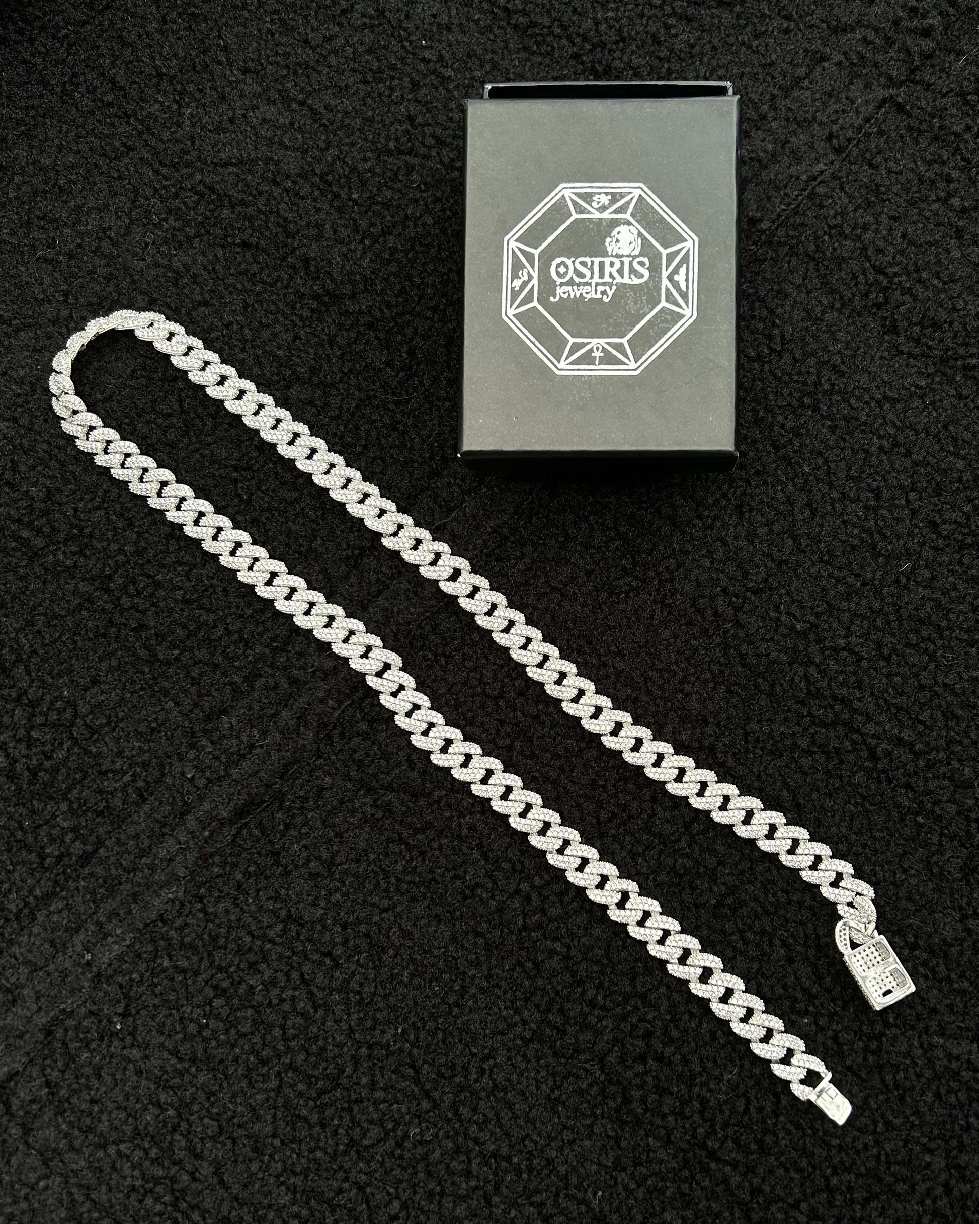 Bu 925 ayar gümüşten üretilmiş Miami Cuban zincir, tam 2.054 adet parlak zirkon taşla kaplanmıştır. Rodyum kaplama sayesinde kararma yapmaz, uzun süre ilk günki parlaklığını korur. Kalın yapısı ve yüksek taş sayısıyla tam bir gösteri parçasıdır.