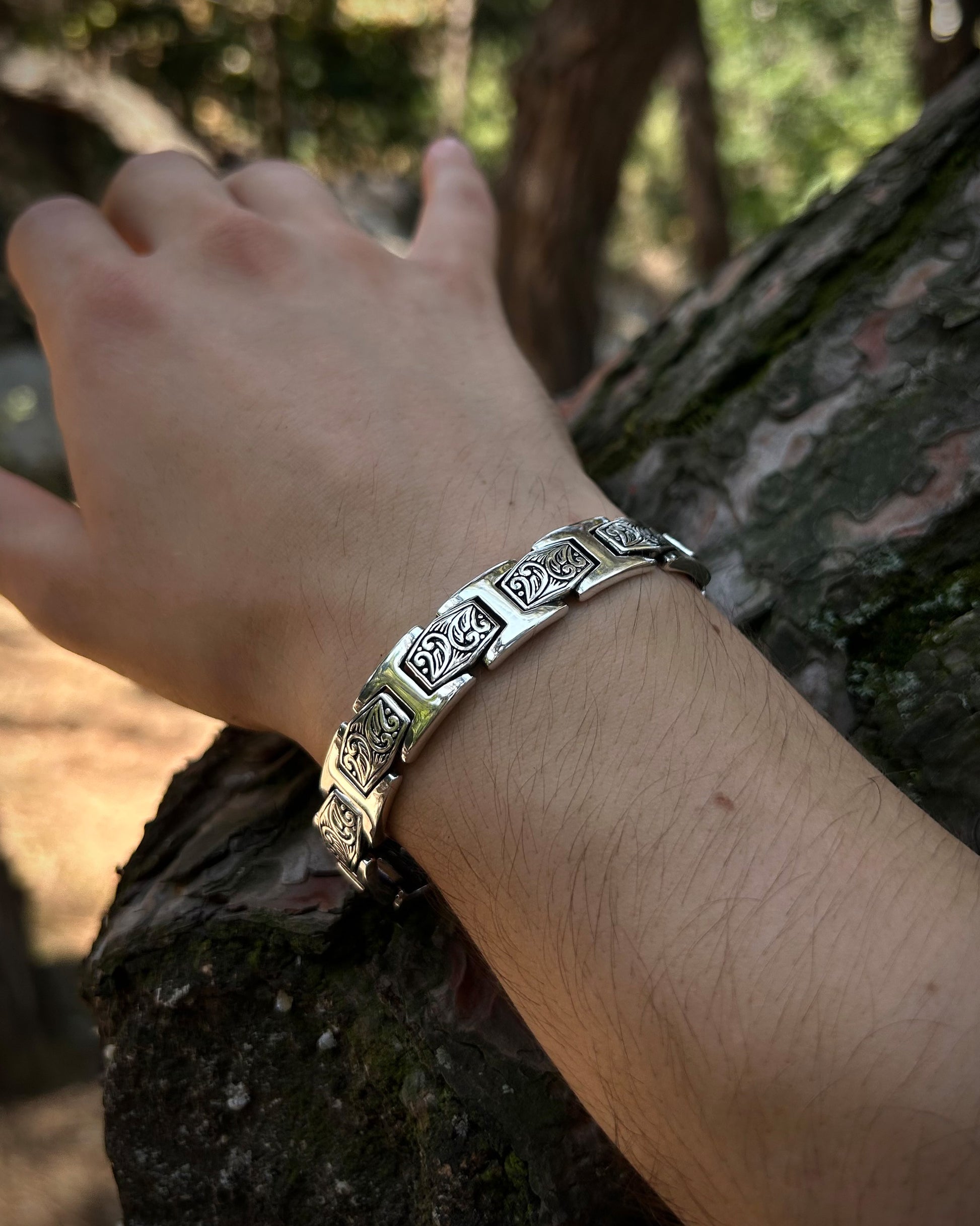 ▶ Plaka zincir tasarımıyla hem günlük kullanım hem de hediye olarak tercih edilebilecek ortalama 35 gram gelen Erkekler için tasarlanmış 925 ayar gümüş bir modeldir.