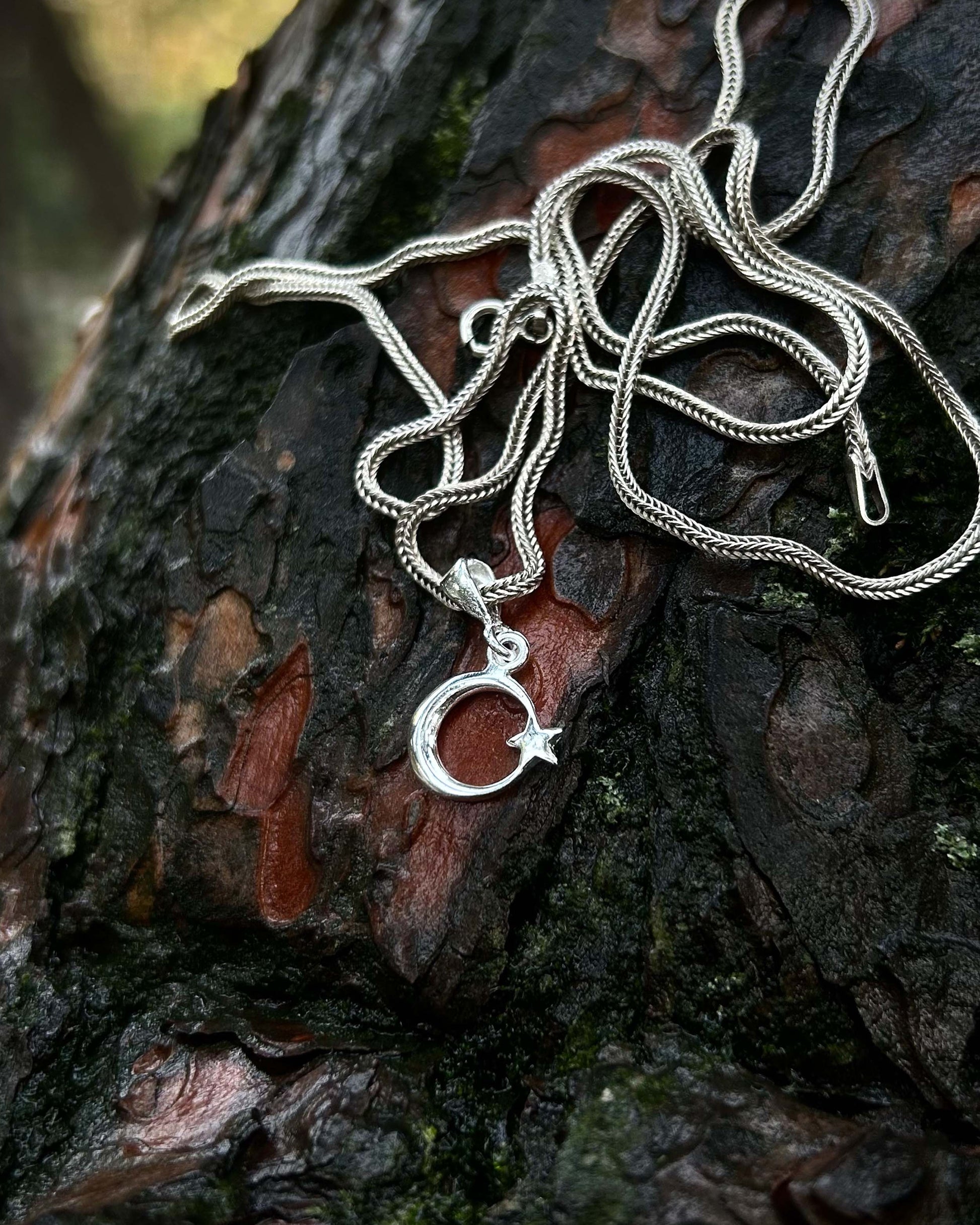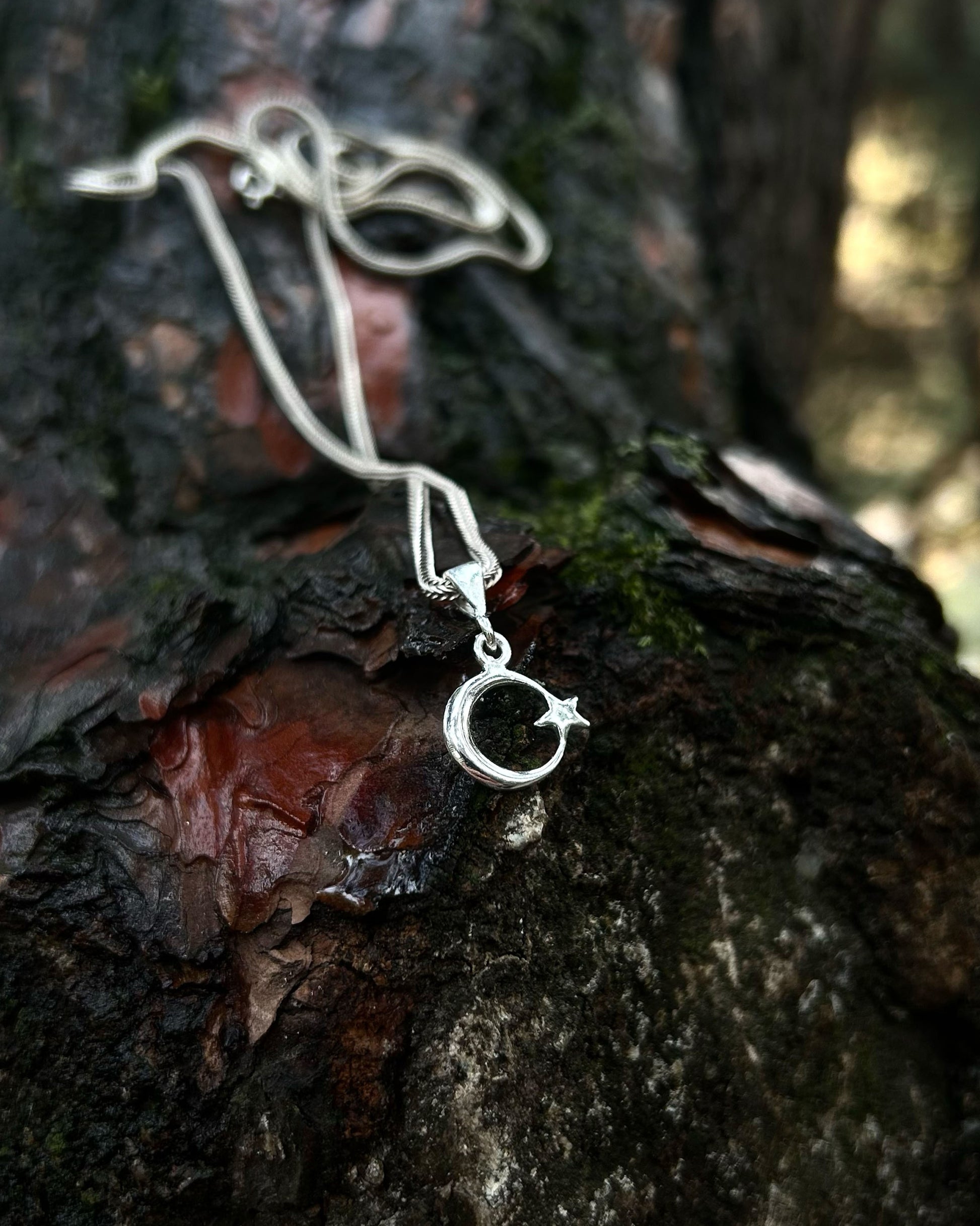 Minimal Ay Yıldız Kolye - 925 Ayar Gümüş