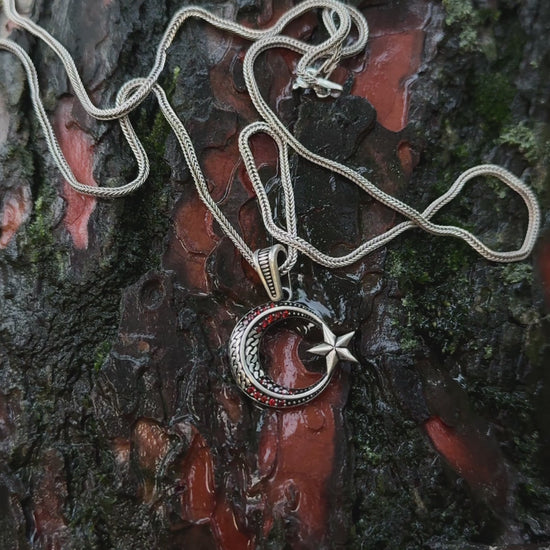 Kırmızı Taşlı Minimal Ay Yıldız Kolye – 925 Ayar Gümüş