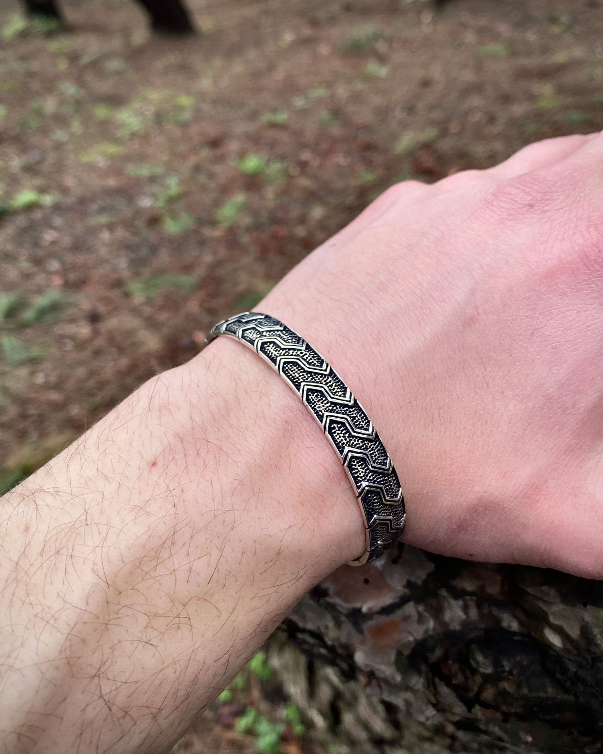 Oksitli Geometrik Desen Bilezik – Ayarlanabilir 925 Ayar Gümüş