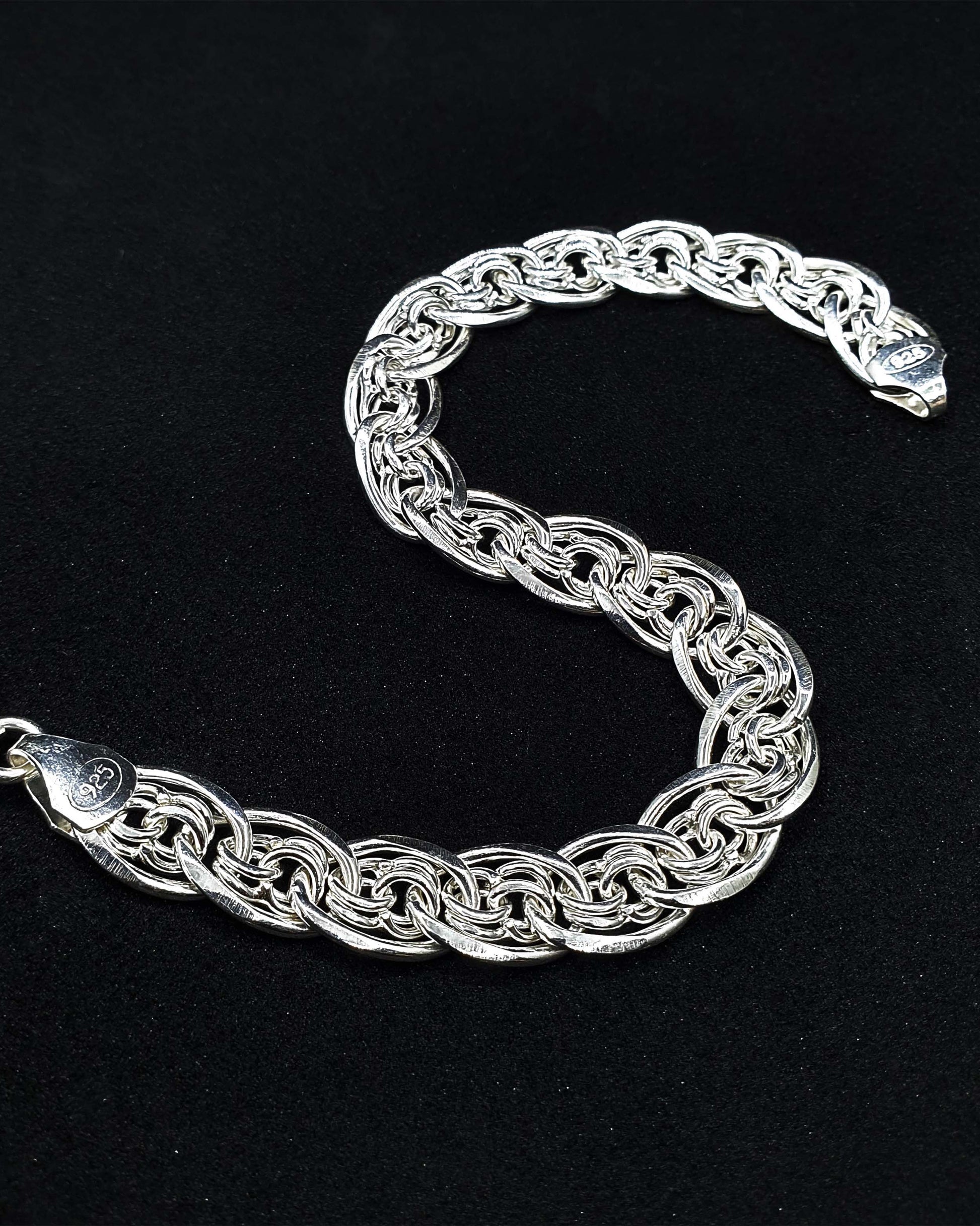 Ham gümüş özenle şekillendirilir ve her halka tek tek elde birleştirilerek zincirin hem sağlamlığı hem de eşsizliği garanti altına alınır.