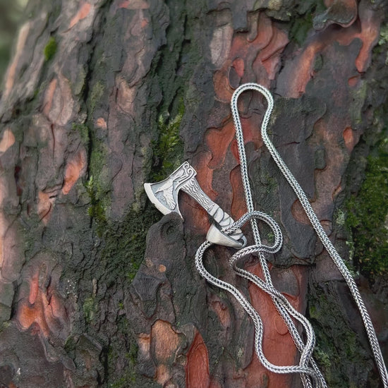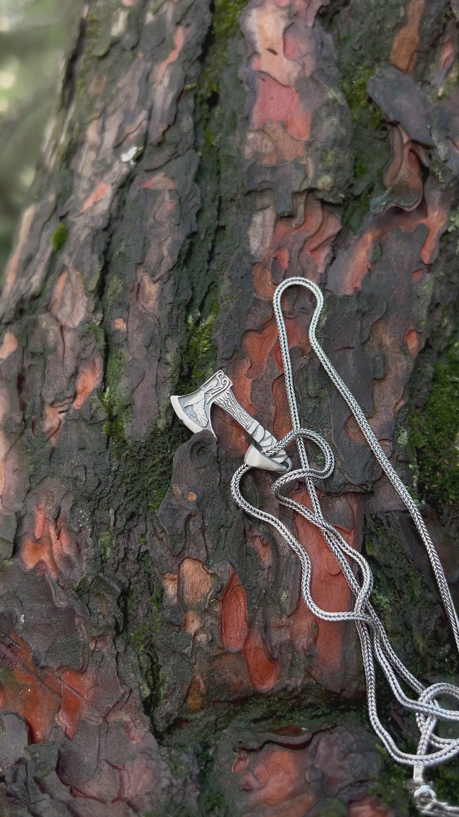 İskandinav savaşçılarının en bilinen simgesi olan Viking baltası, savaşçı ruhunu, cesareti ve kararlılığı temsil eder. 925 ayar gümüşten detaylı işçilikle üretilen bu kolye, tarihin bu güçlü sembolünü modern bir tasarımla stilinize taşır.
