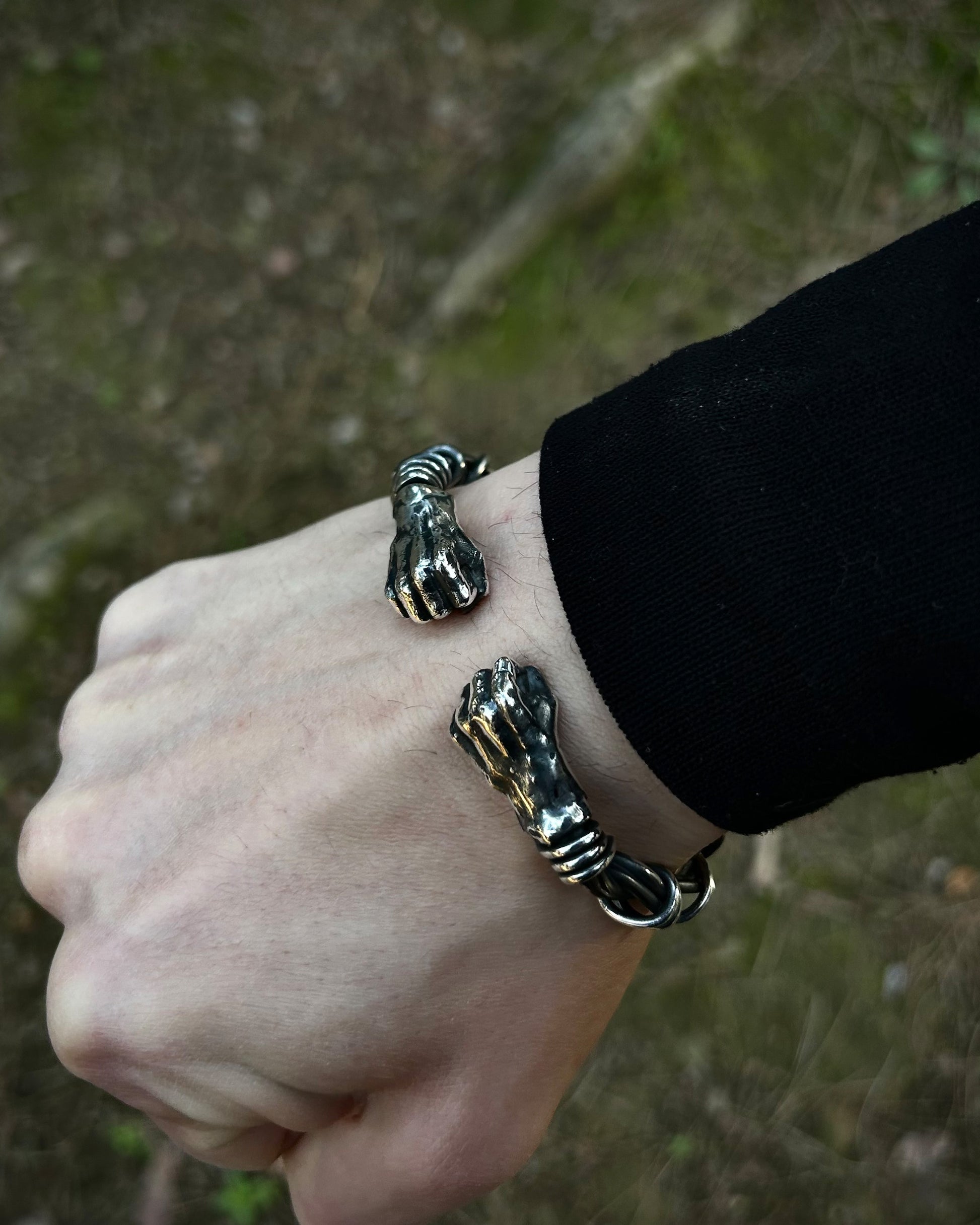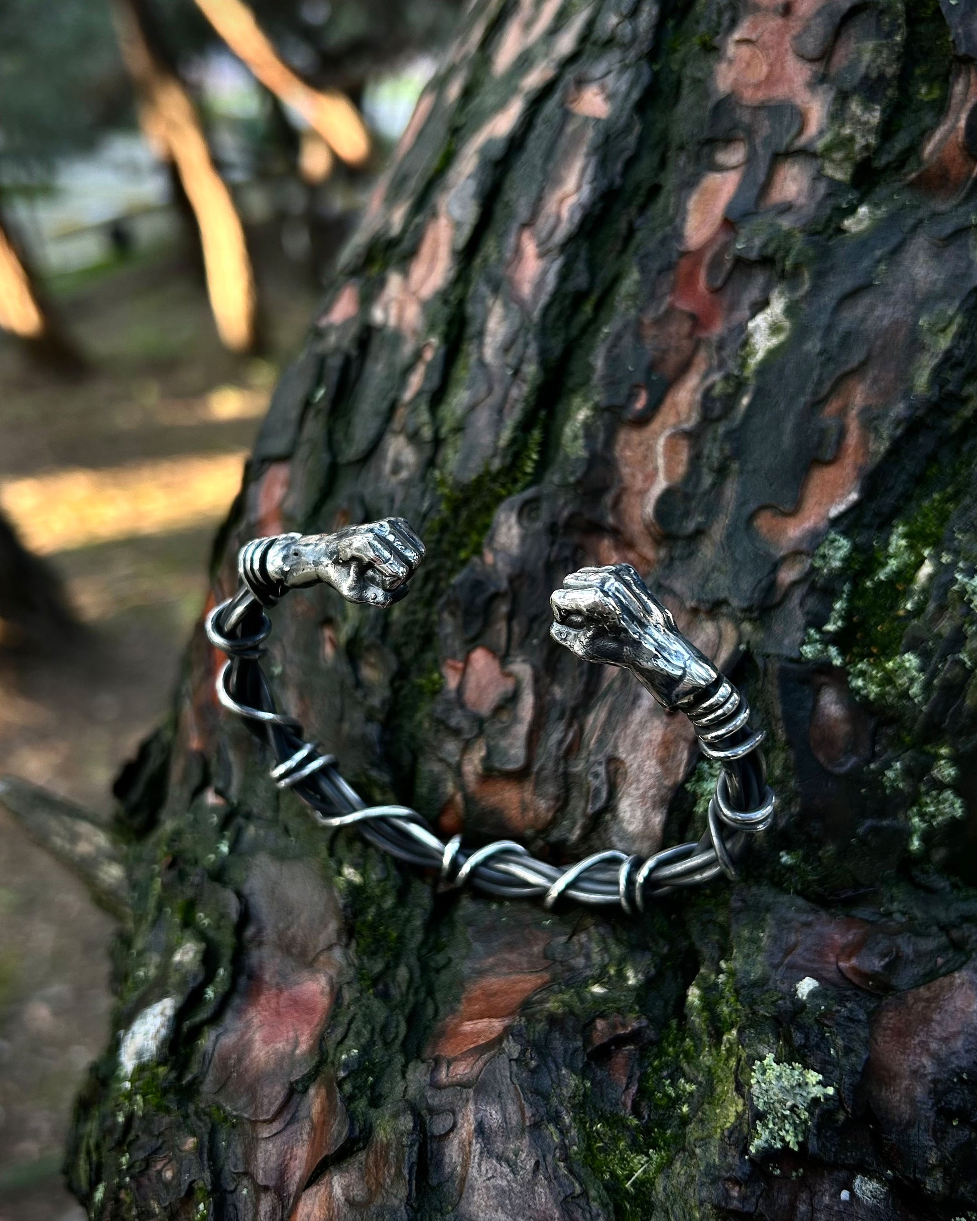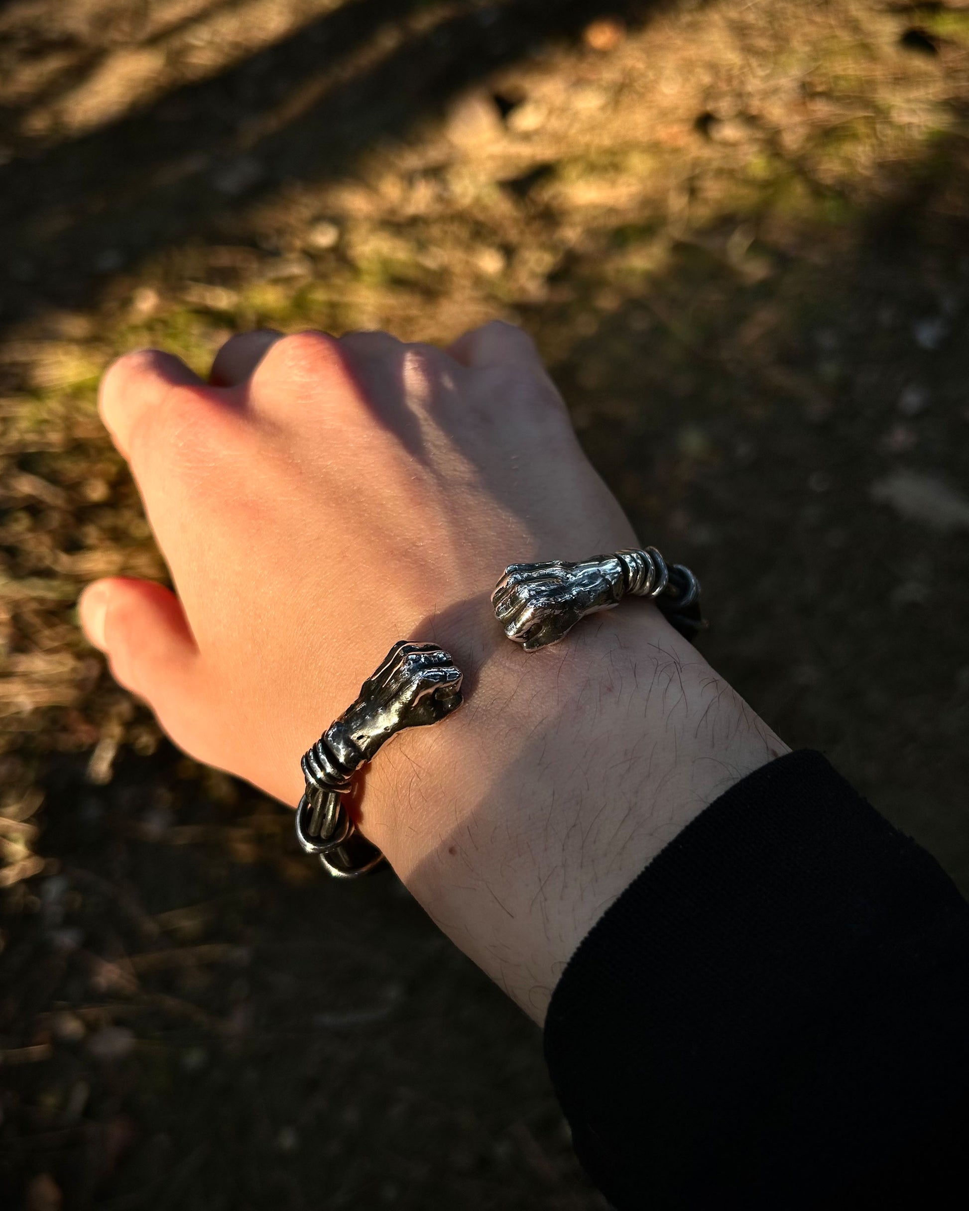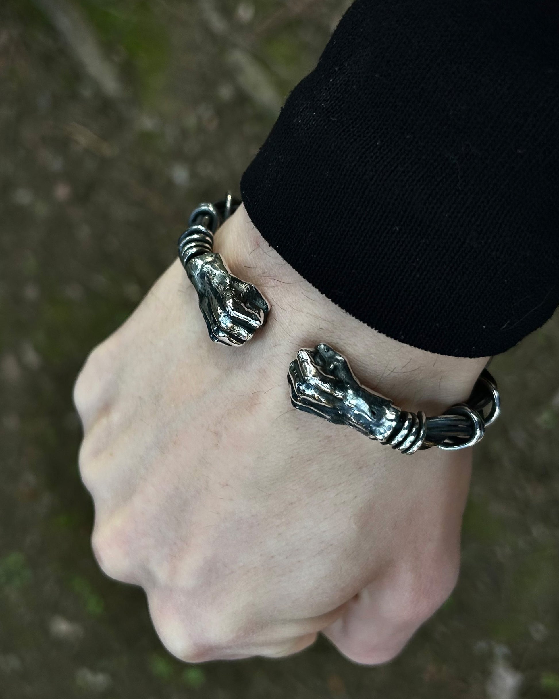 ▶ 925 ayar gümüşten üretilmiş olup sıkılı yumruk figürüyle dayanıklılığı ve kararlılığı simgeler. Ayarlanabilir yapısıyla farklı bilek ölçülerine kolayca uyum sağlar. ◀