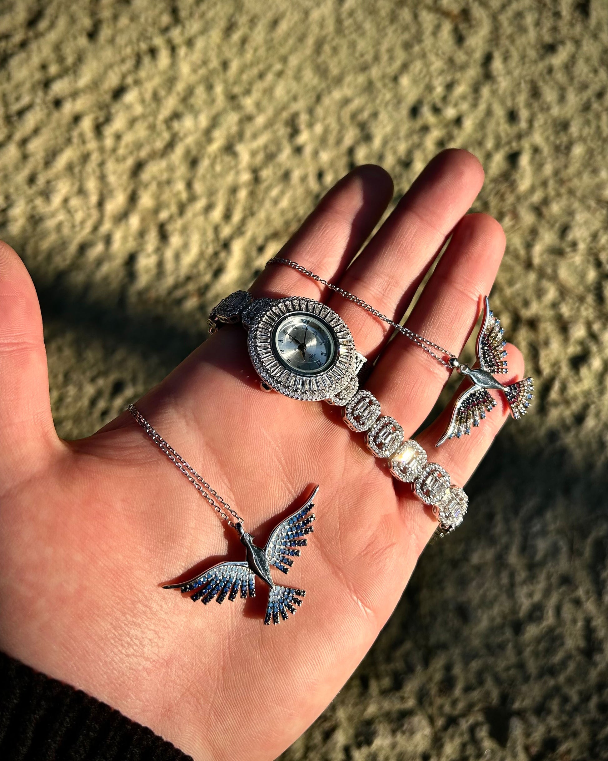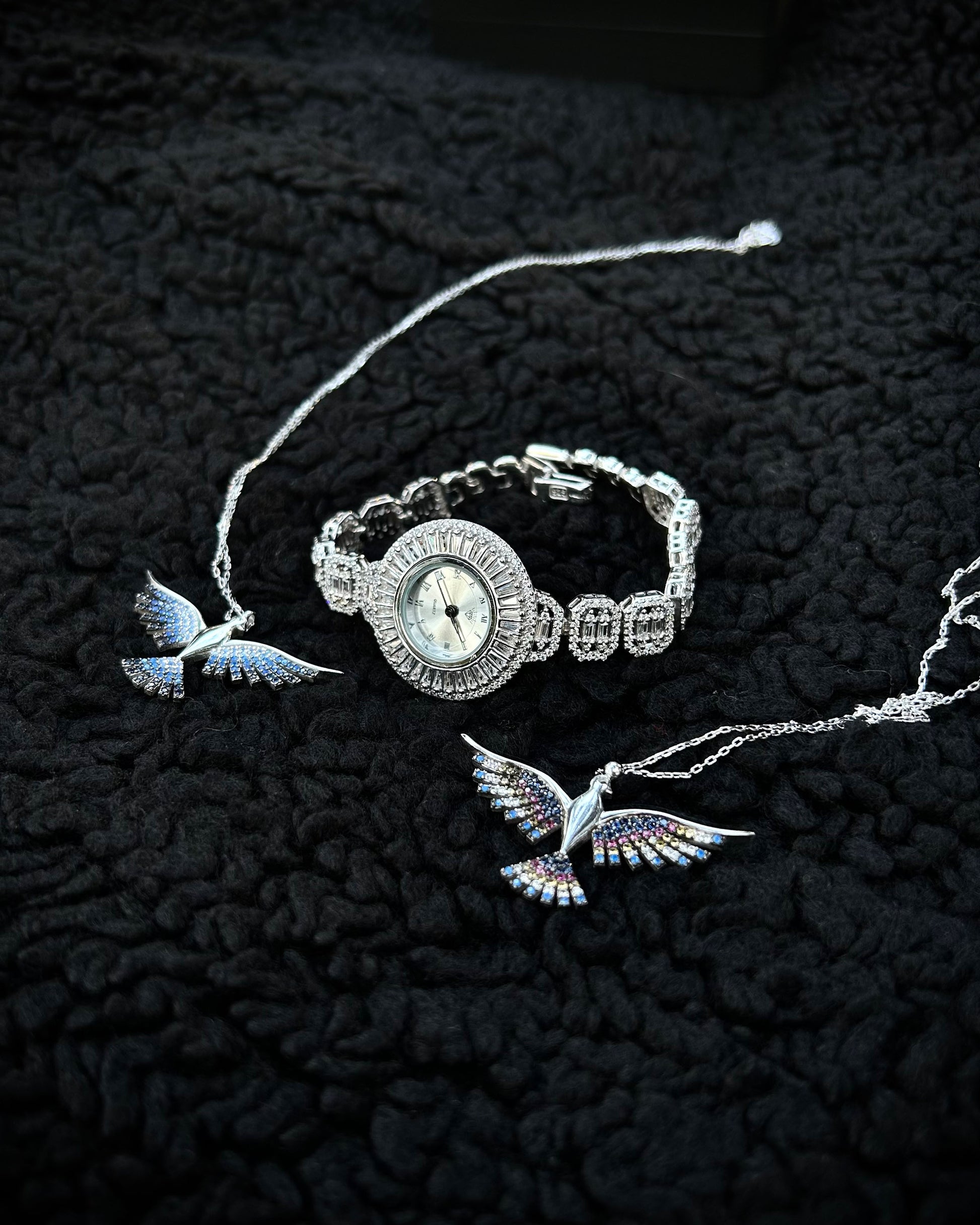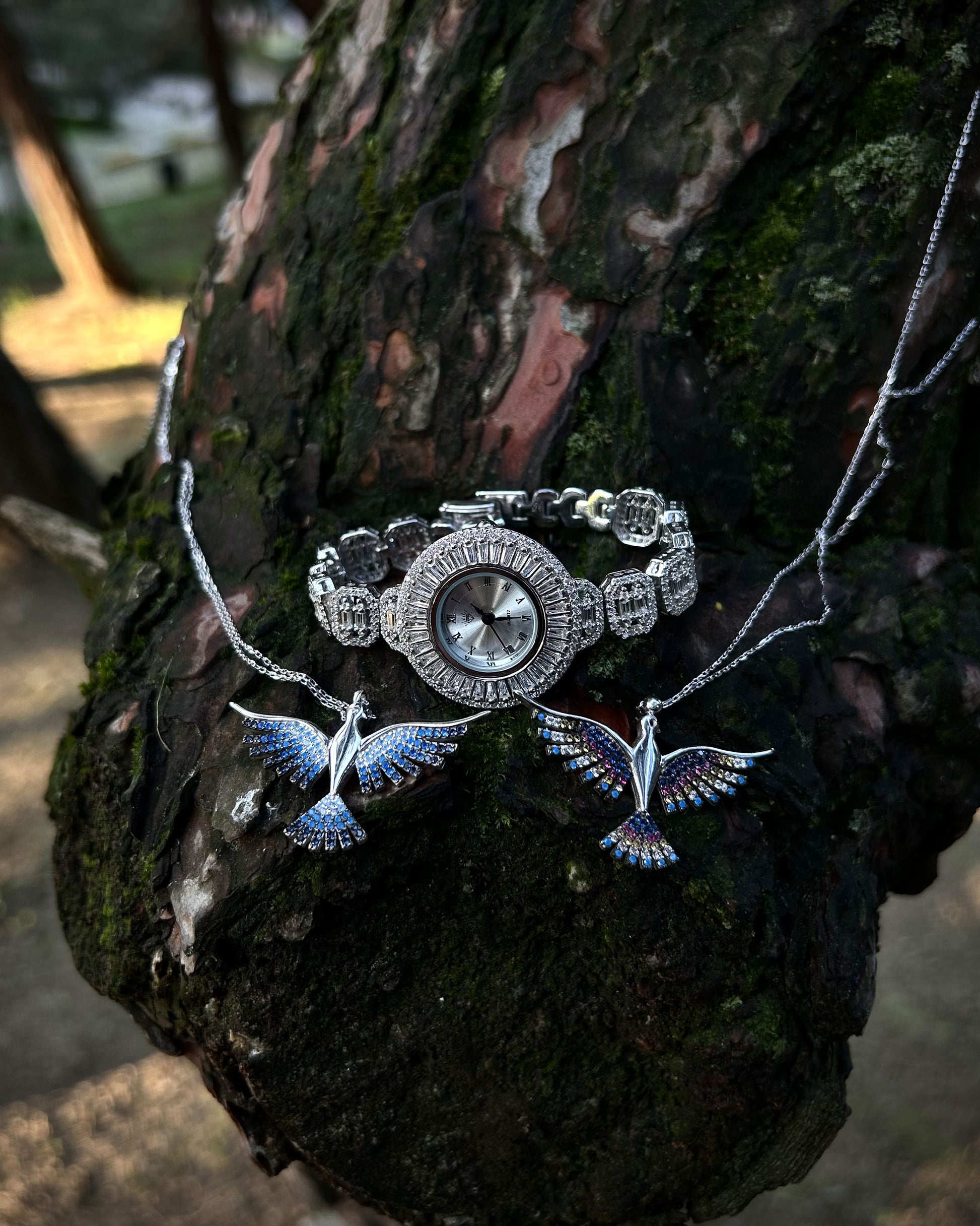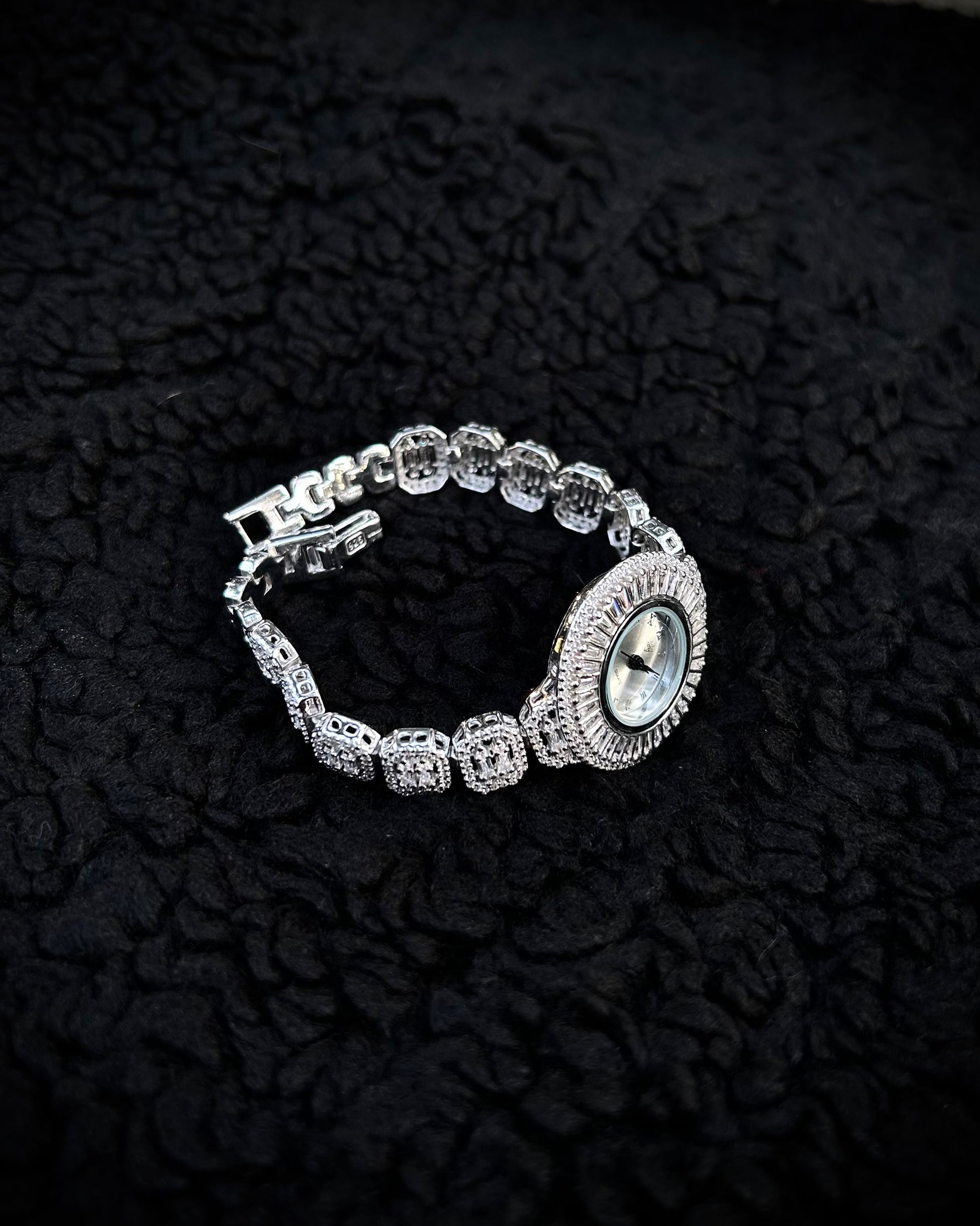▶ Bu saat, 925 ayar gümüşten üretilmiş ve yaklaşık 440-450 adet zirkon taşla elde süslenmiştir. Etsy üzeri satış fiyatı 20.490TL'dir