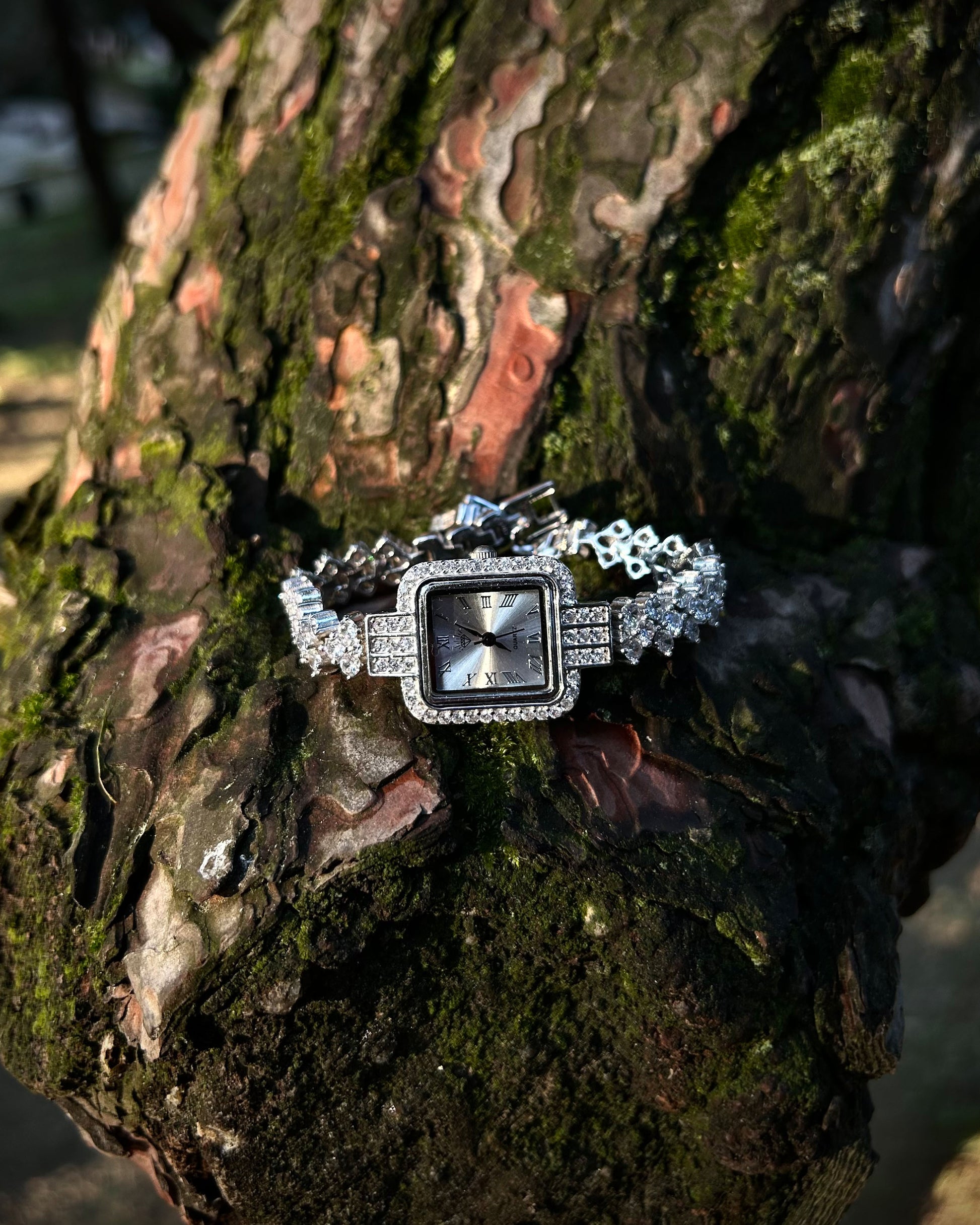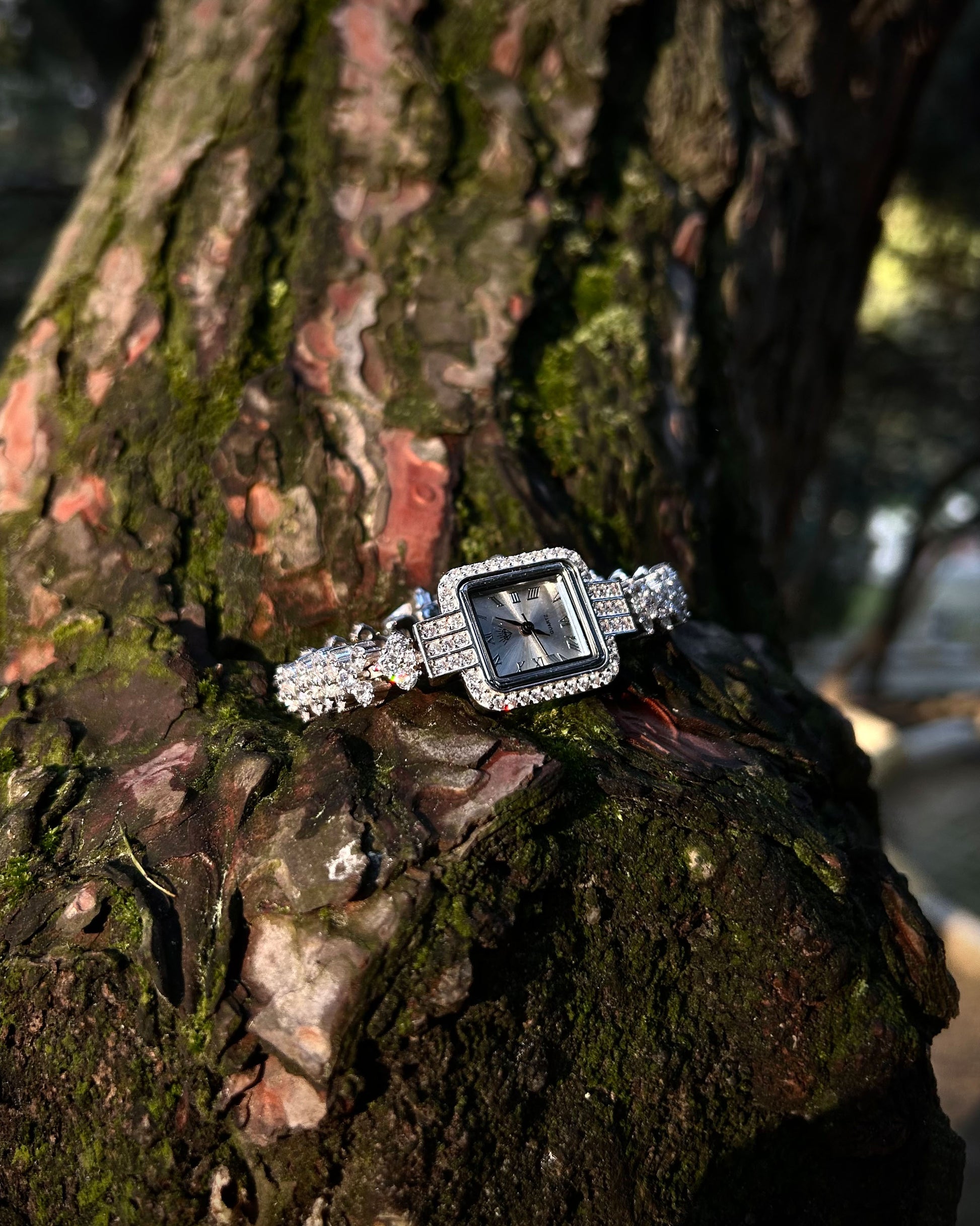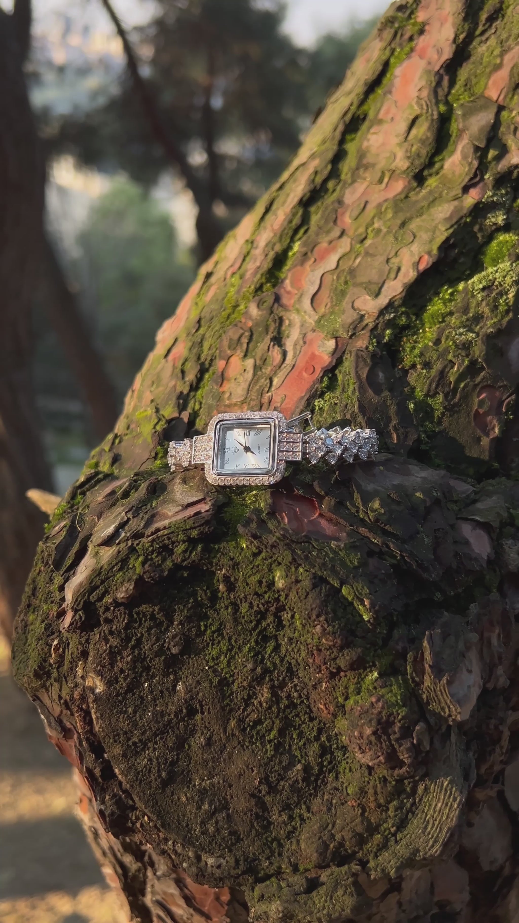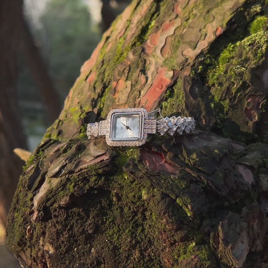 Rodyum Kaplama Taşlı Kadın Saati Model 3 - 925 Ayar Gümüş
