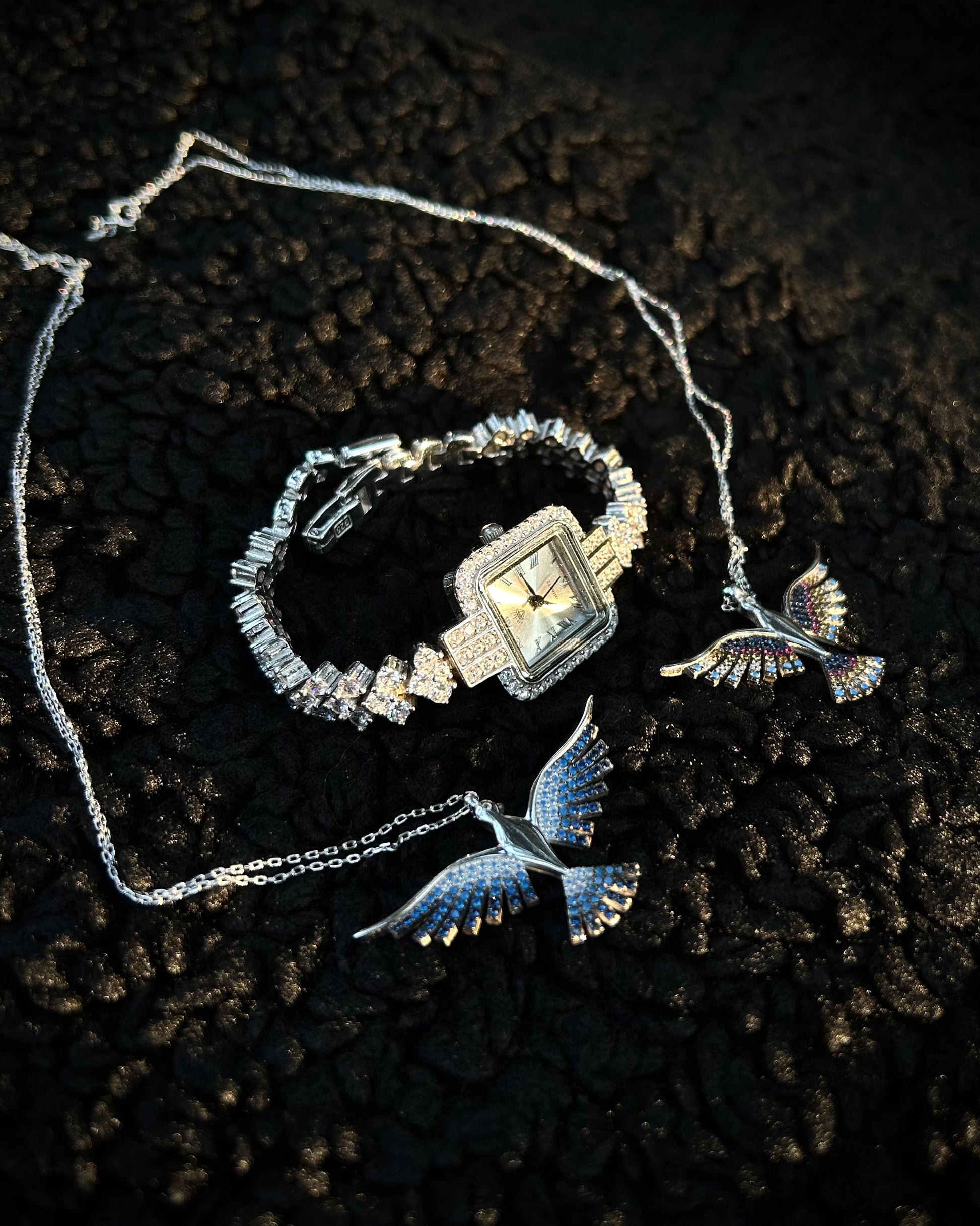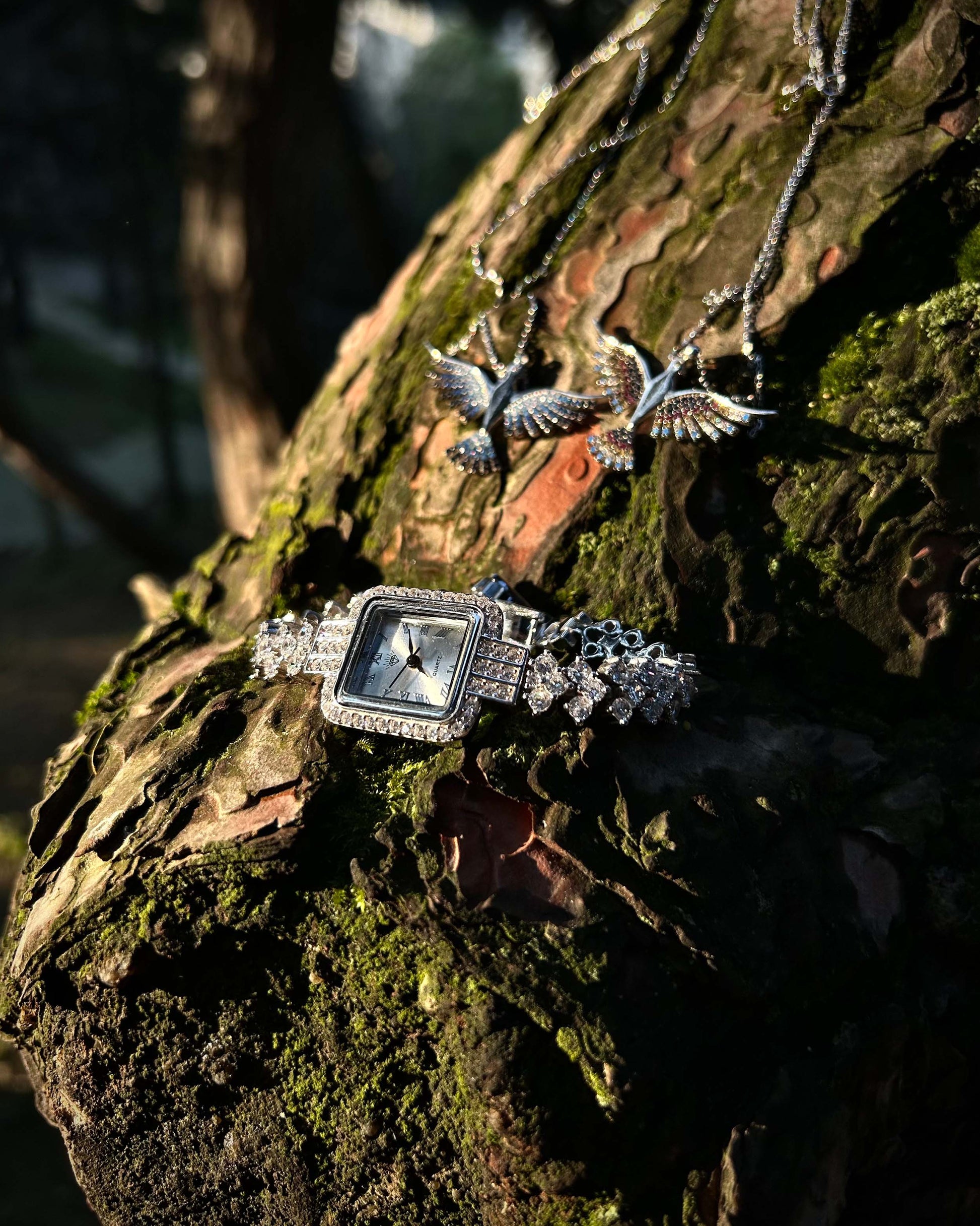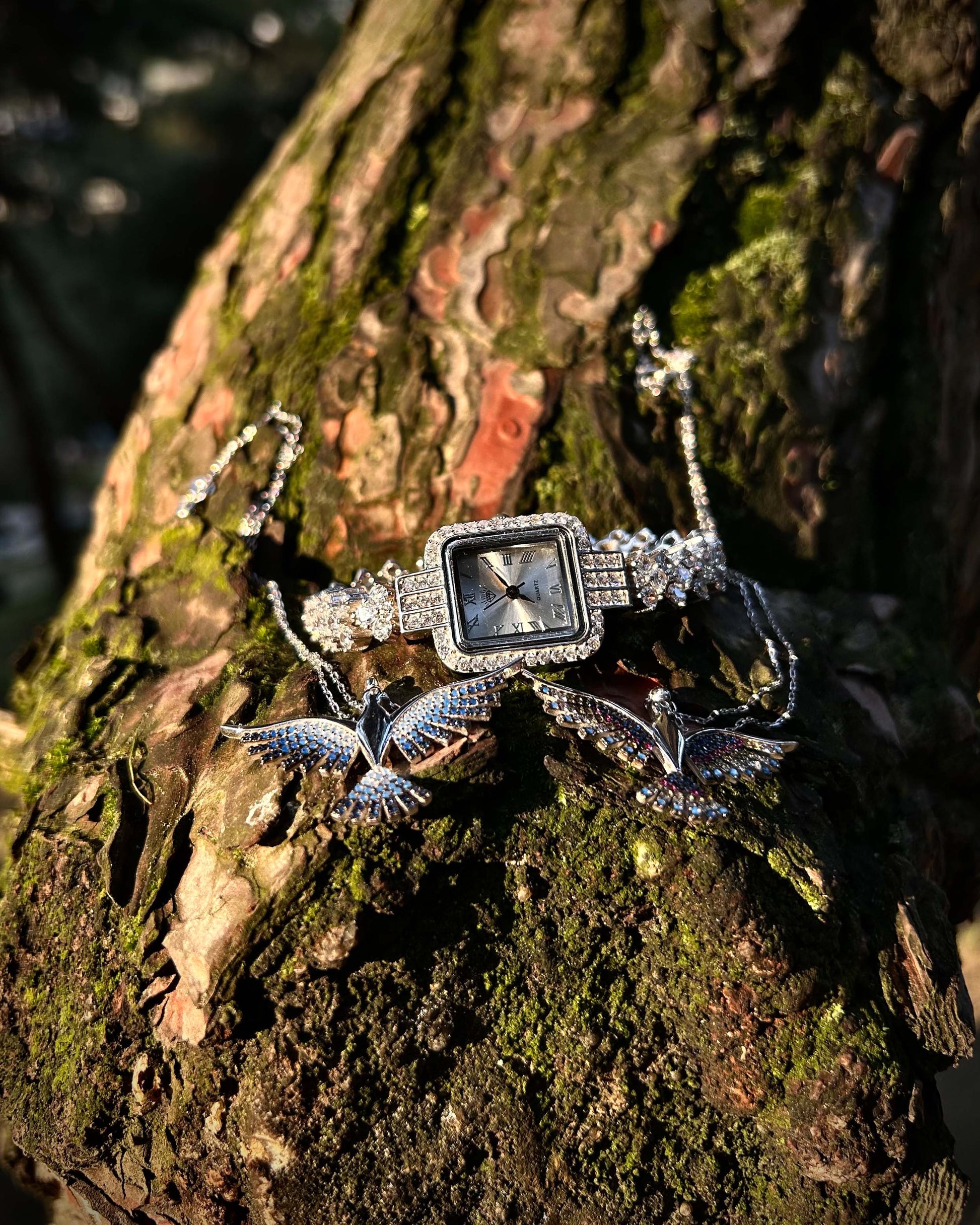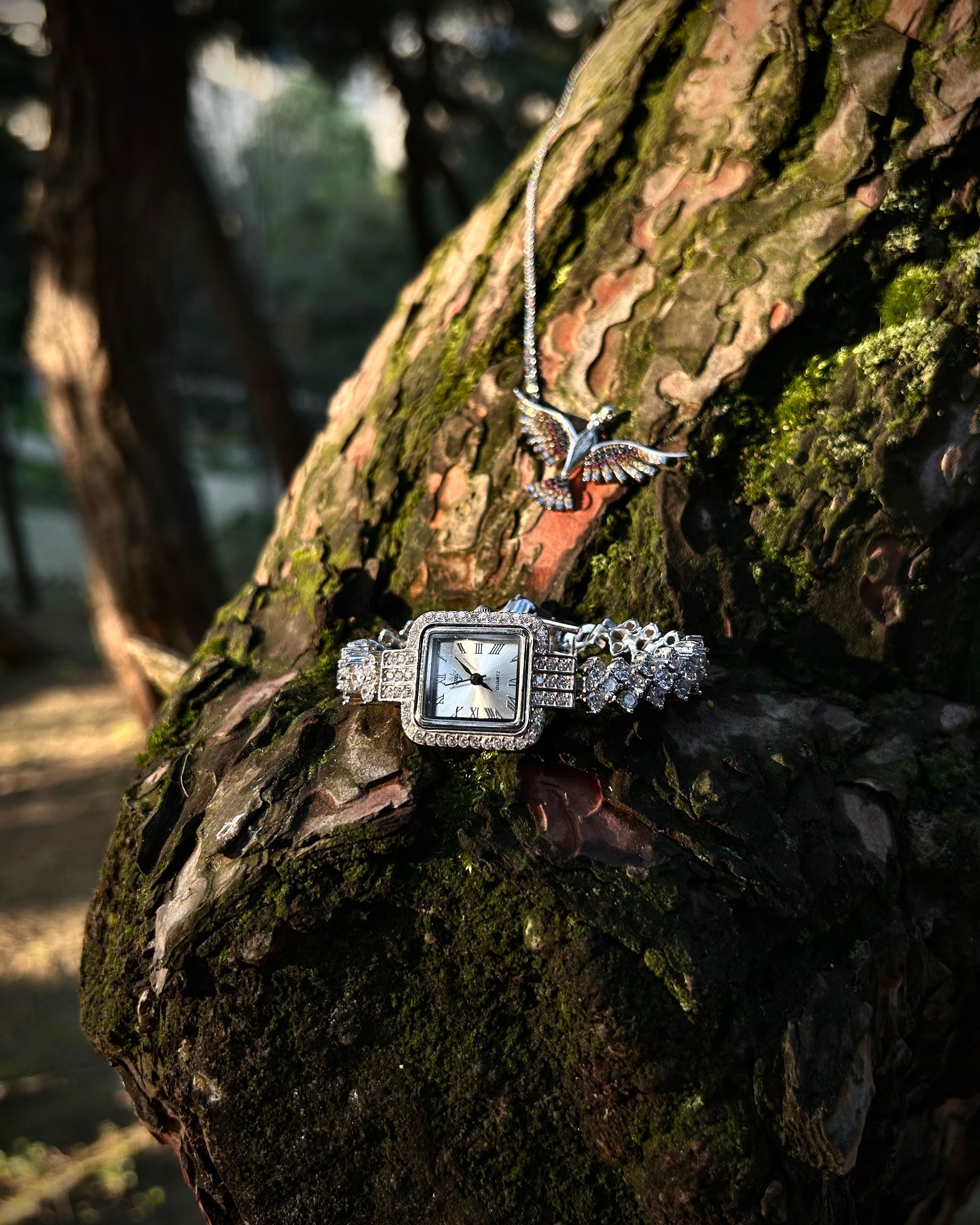 ▶ Bu saat, 925 ayar gümüşten üretilmiş ve yaklaşık 105-115 adet zirkon taşla elde süslenmiştir. Etsy üzeri satış fiyatı 20.490TL'dir