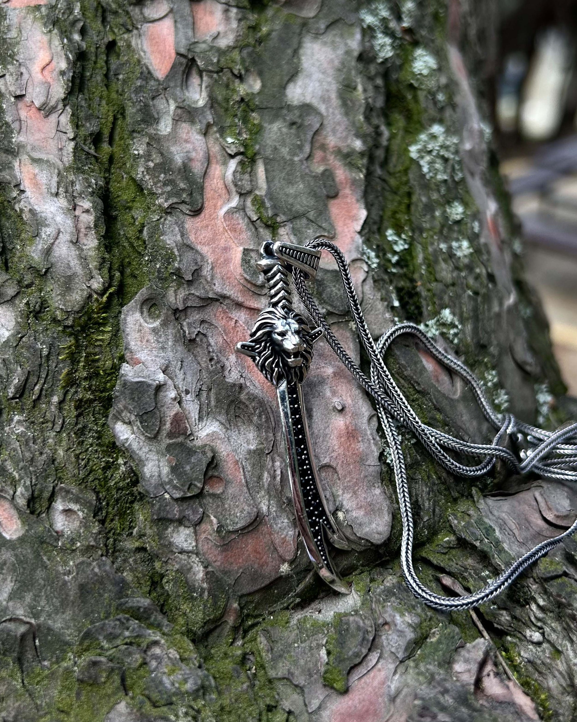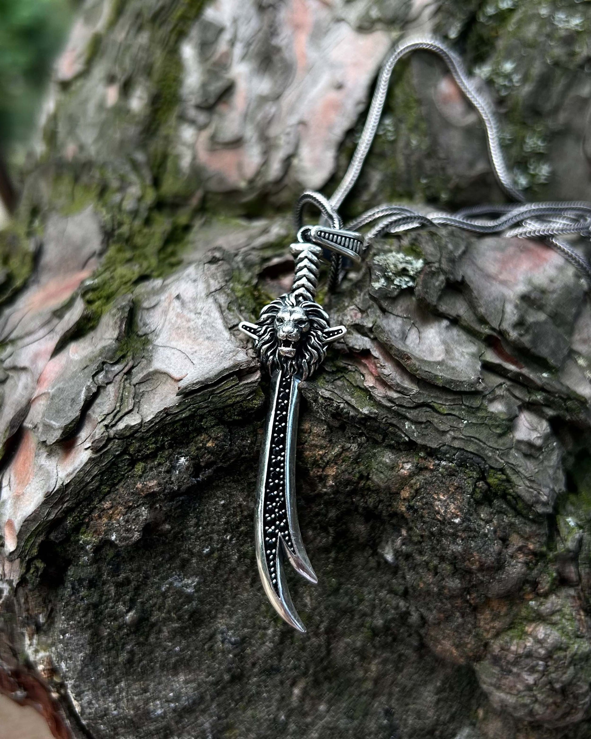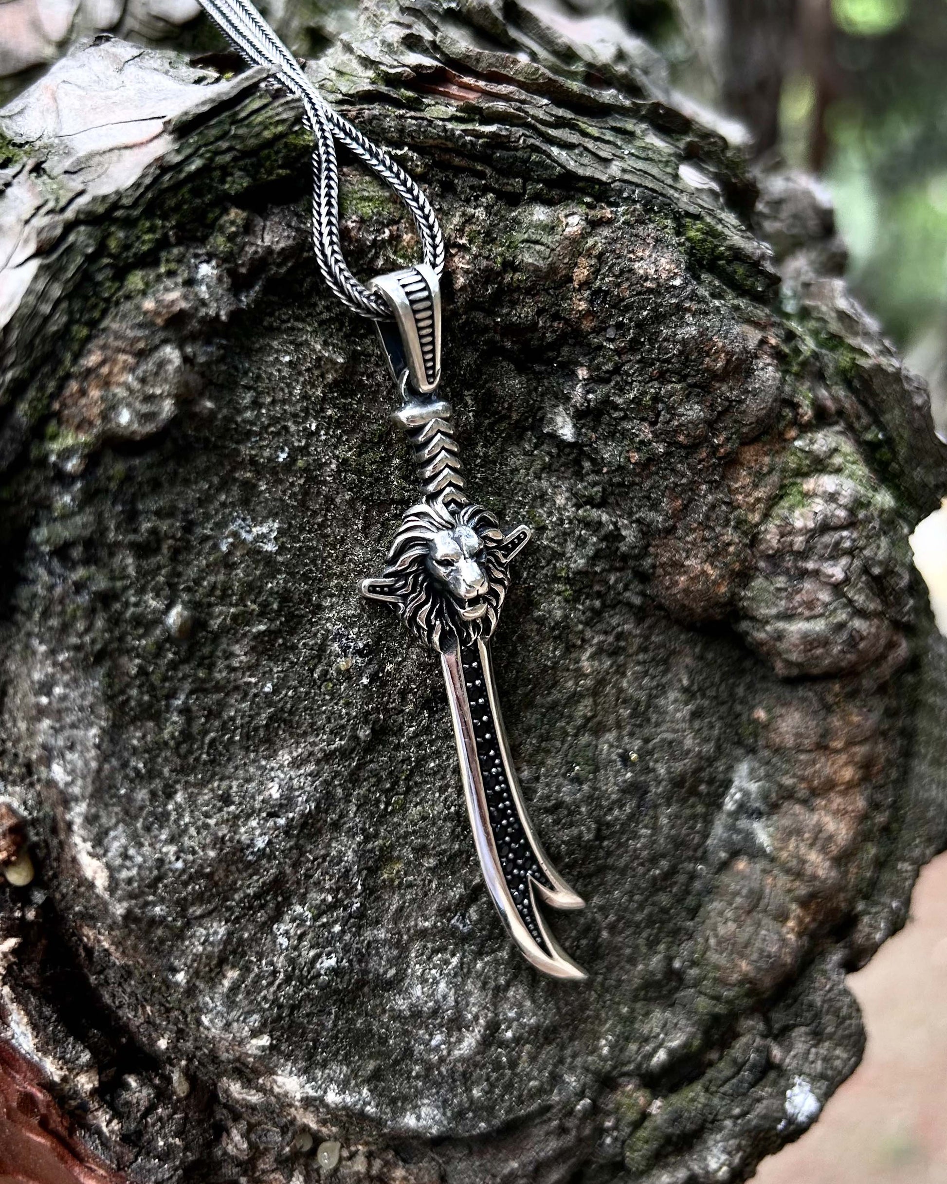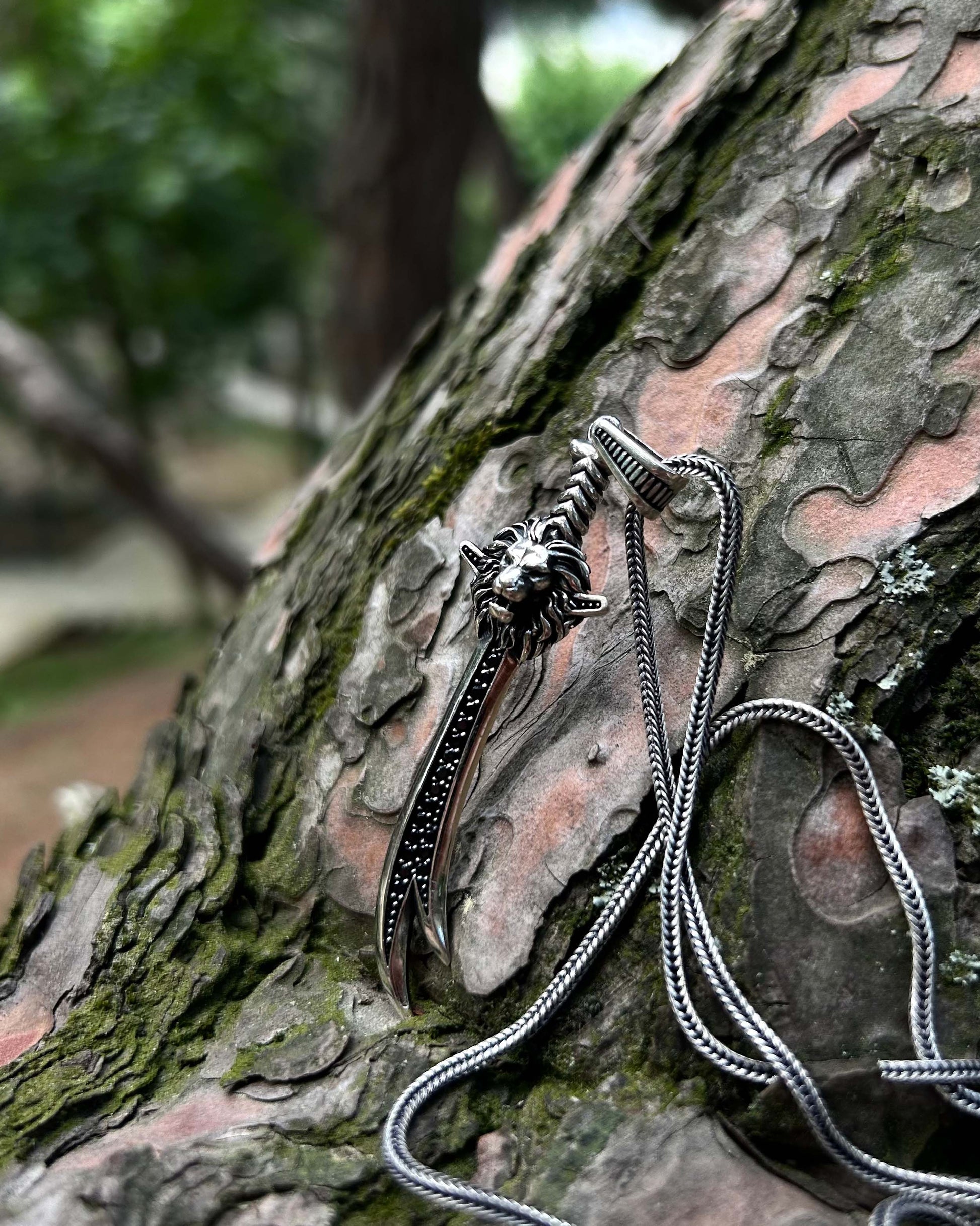Aslan Başlı Zülfikar Kılıcı Kolye – 925 Ayar Gümüş