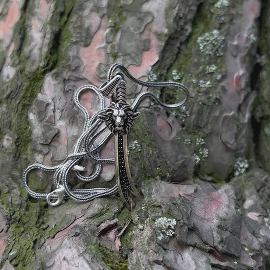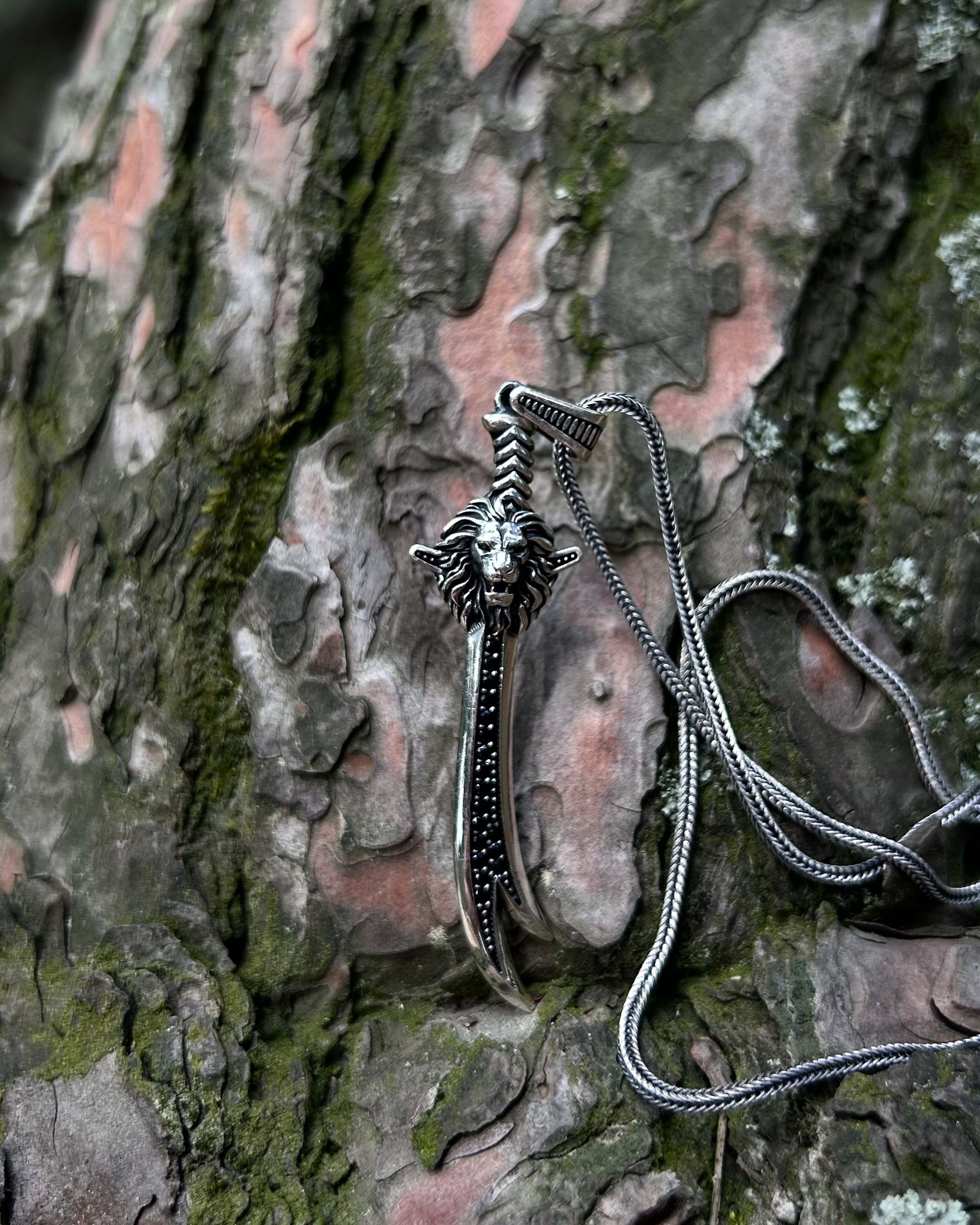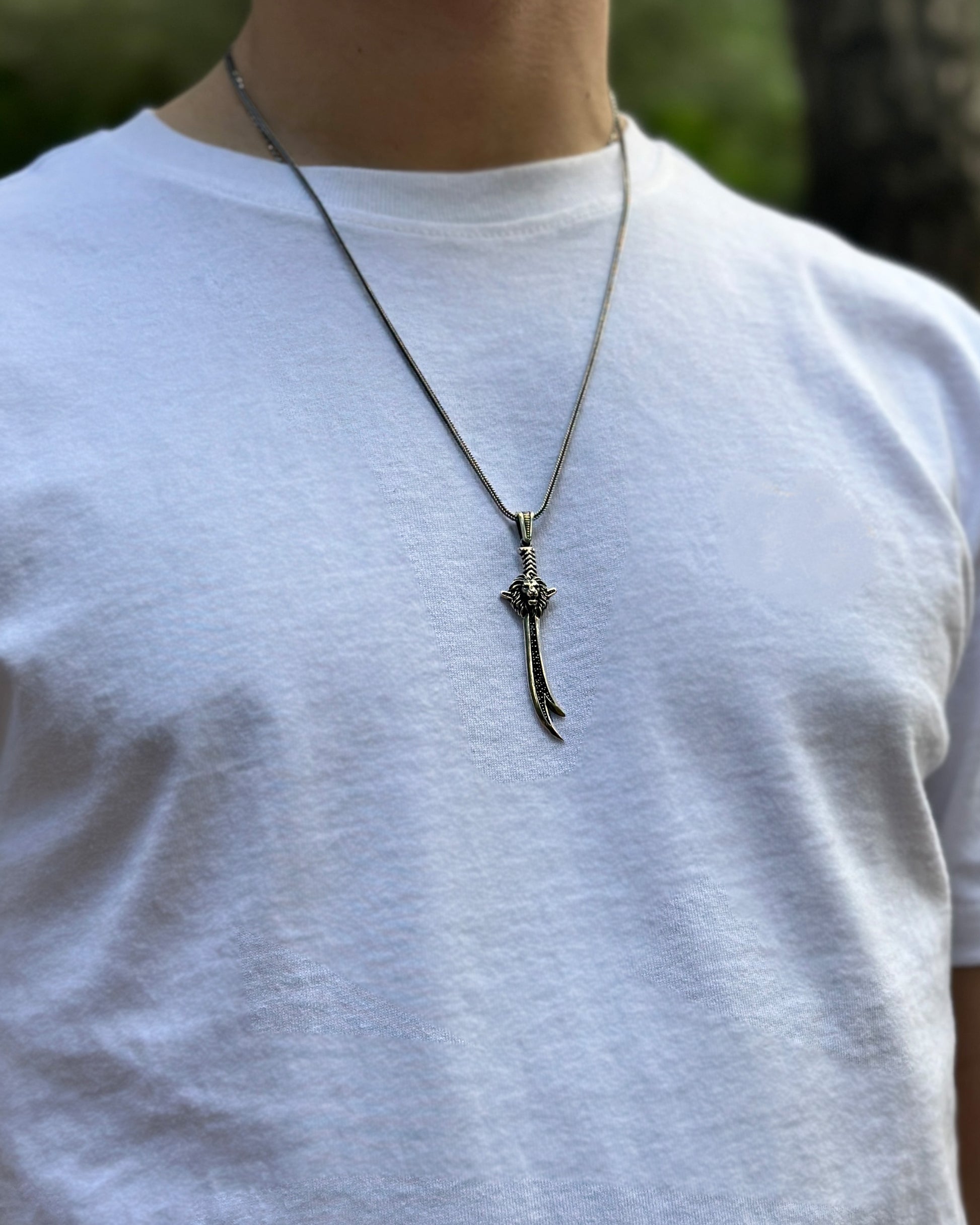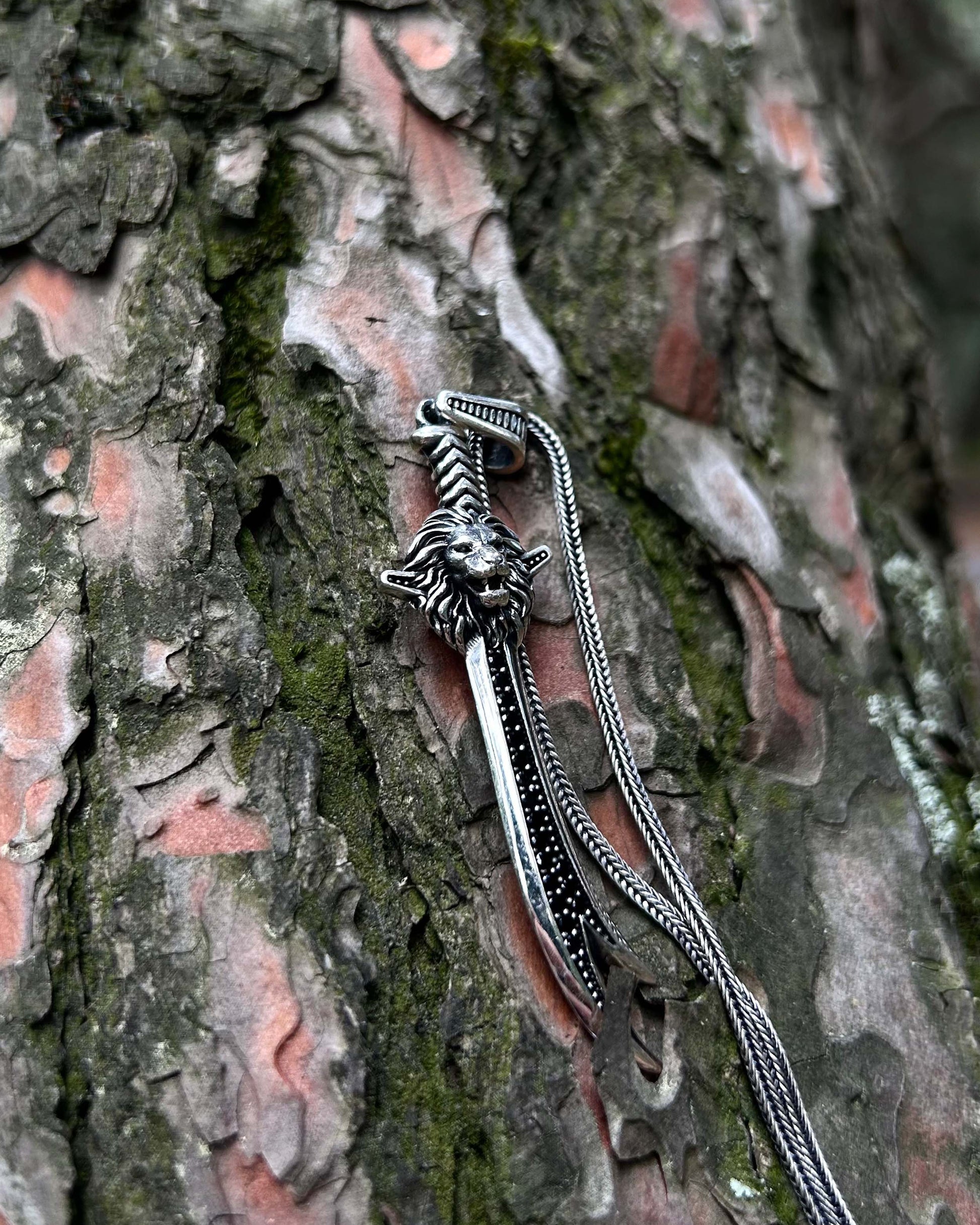 Aslan Başlı Zülfikar Kılıcı Kolye – 925 Ayar Gümüş