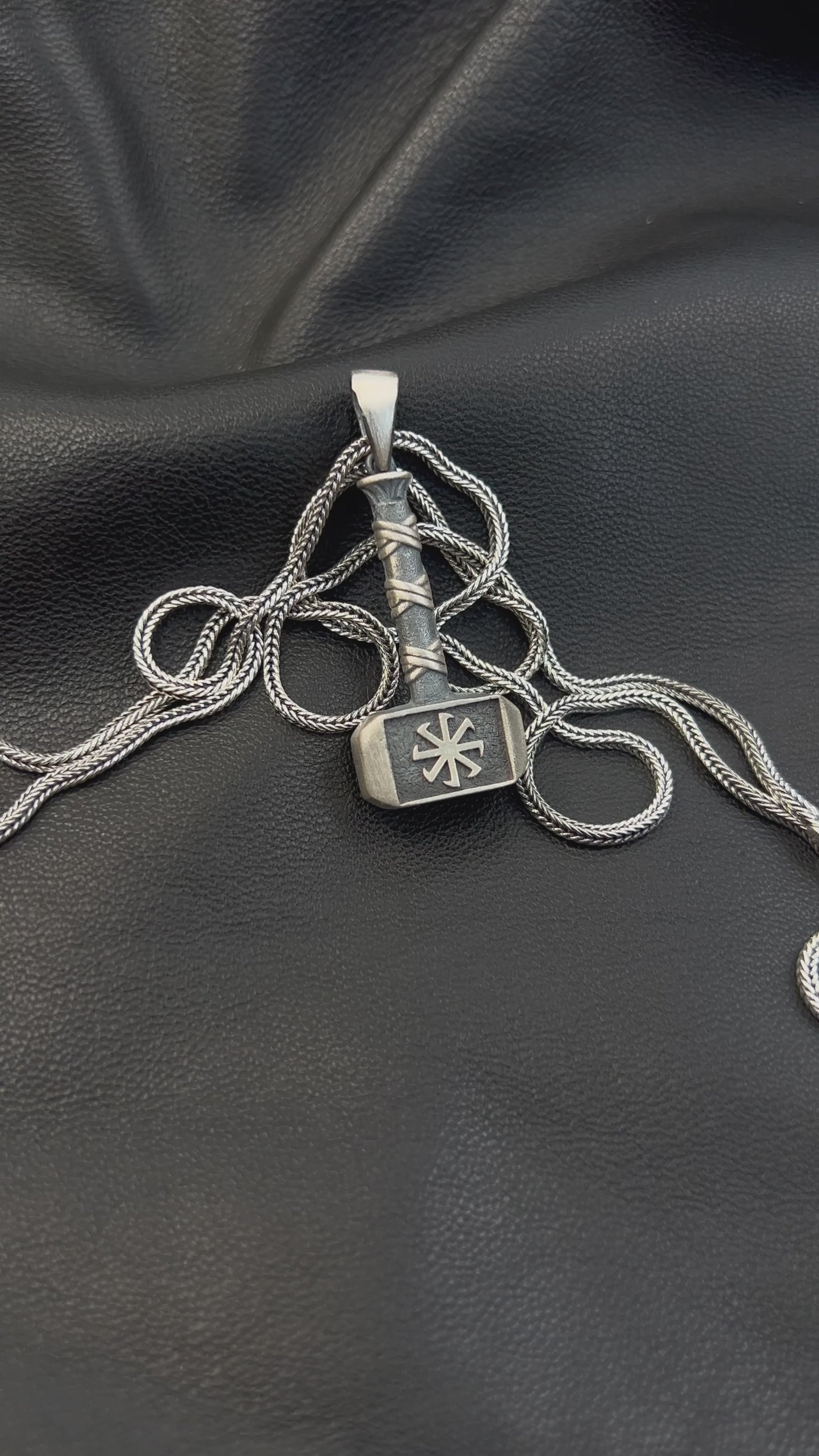 İskandinav mitolojisinin efsanevi sembolü Mjölnir, yani Thor'un Çekici, gücü, korumayı ve sarsılmaz cesareti temsil eder. 925 ayar gümüşten özenle üretilen bu kolye, iskandinav mitolojisini modern ve maskülen bir tasarımla stilinize taşır.